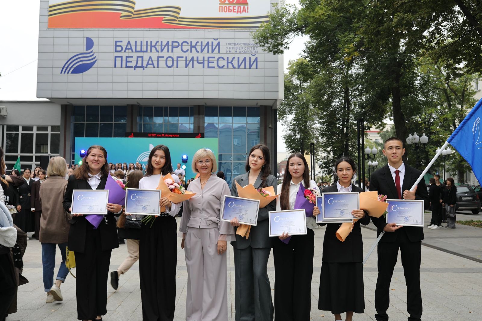 Ректор БГПУ, депутат Госсобрания – Курултая РБ Салават Сагитов поздравил студентов и вручил сертификаты на повышенную стипендию первокурсникам, показавшим выдающиеся результаты на экзаменах и олимпиадах. Среди награждённых: