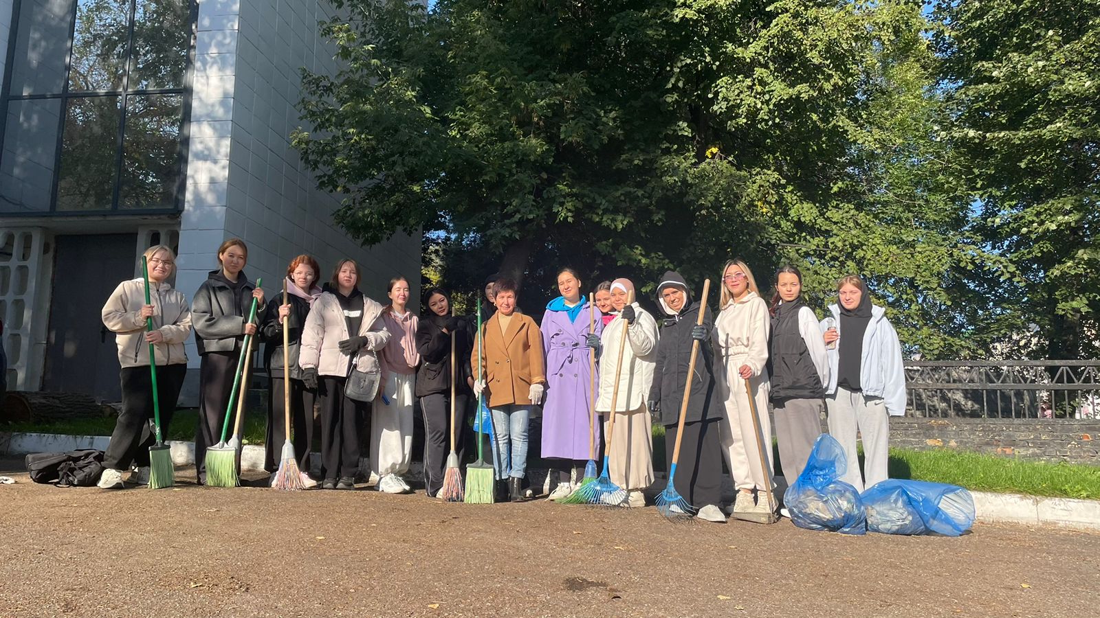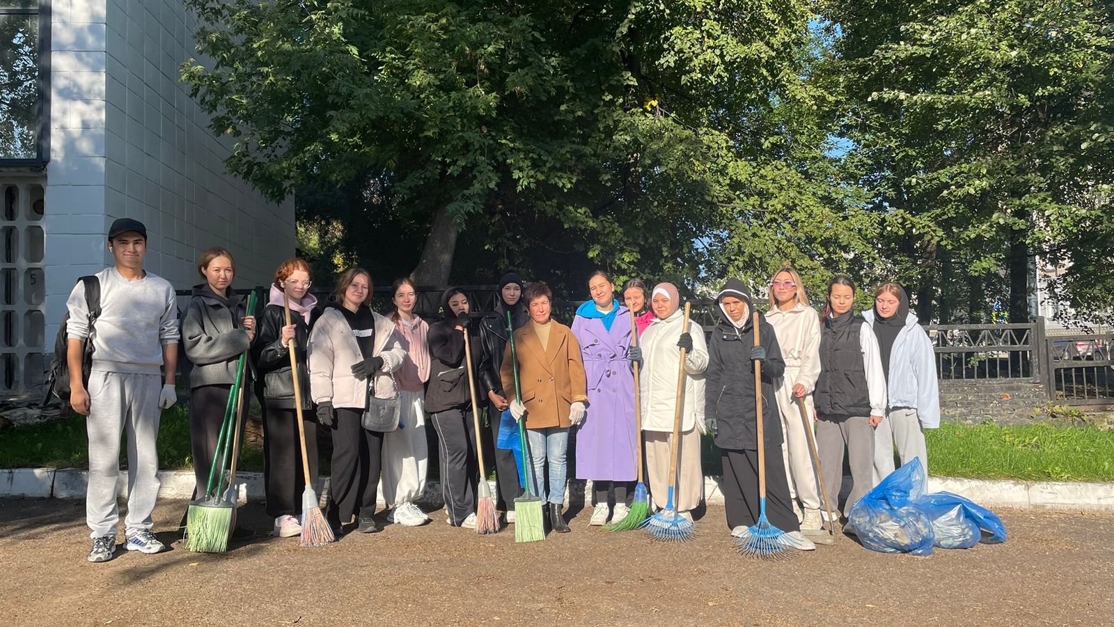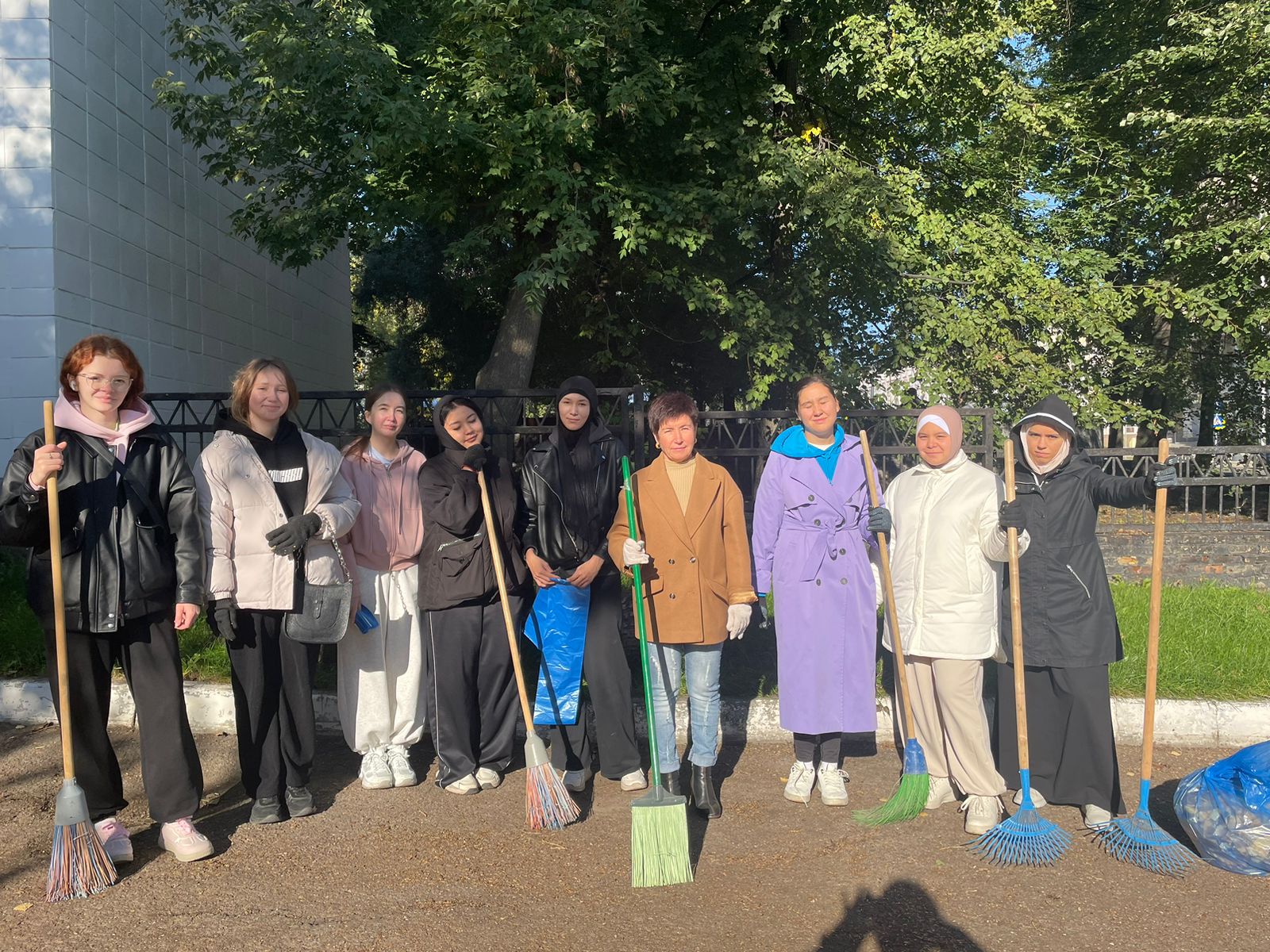 13 сентября первокурсники направления  "Английский язык и восточные языки"  с заместителем декана по воспитательной работе Гульназ Дауратовной Валиевой участвовали на Всероссийском экологическом субботнике  «Зелёная Россия».