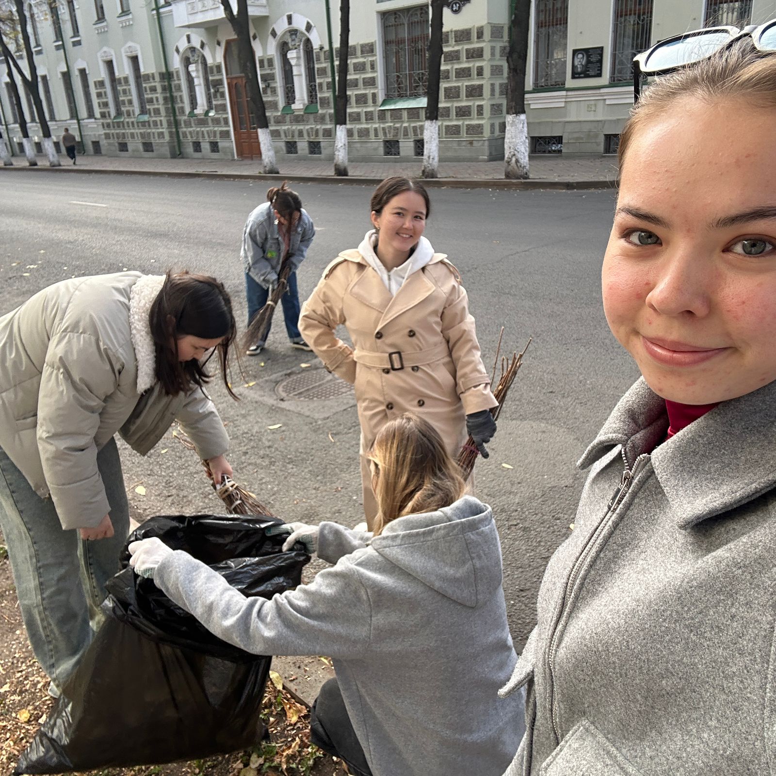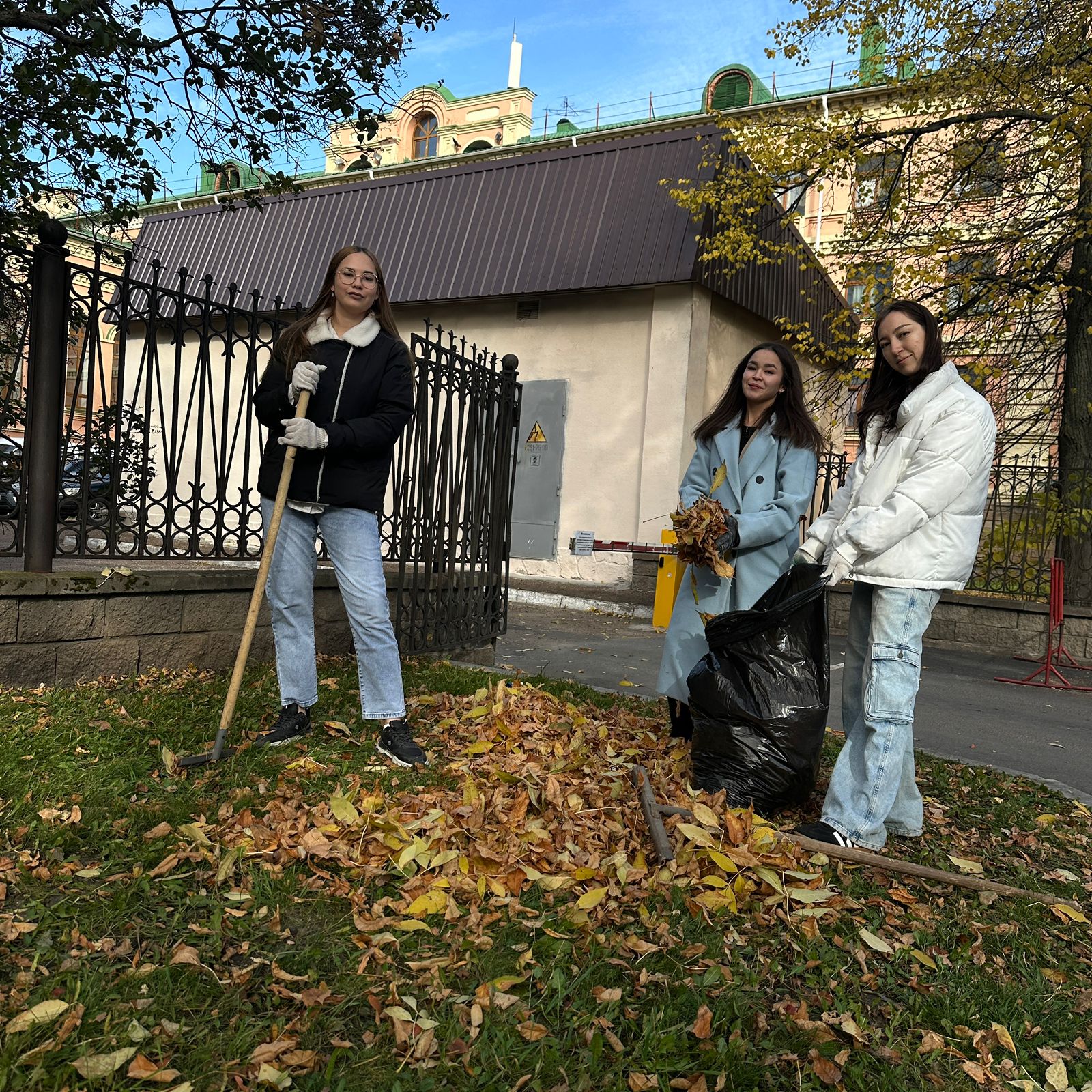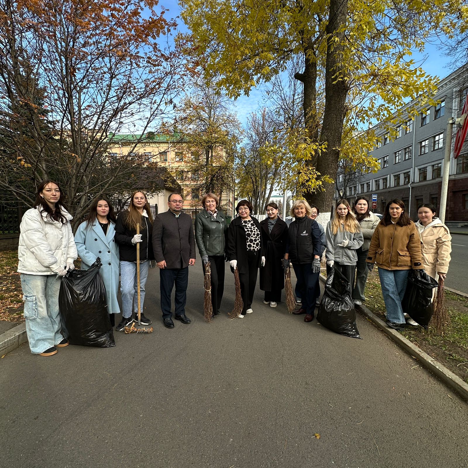 Работа кипела с самого утра. Вооружившись граблями и метлами, наши студенты и преподаватели активно взялись за дело: они тщательно подметали пешеходные дорожки, собирали опавшую листву и приводили в порядок зелёную зону. Общими усилиями закрепленная территория заметно преобразилась, став чище и ухоженнее.