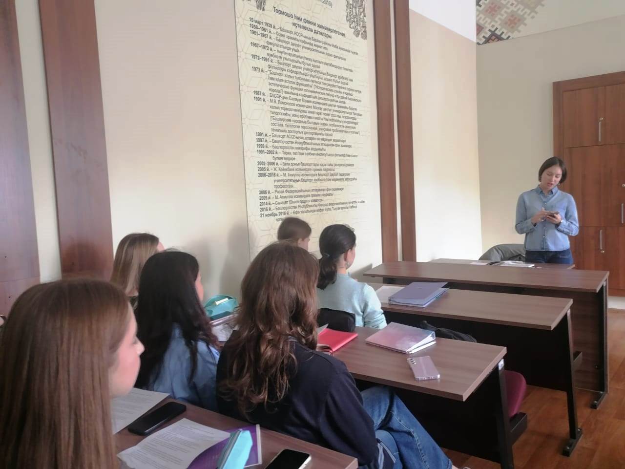 Студенты группы ПОИЯ_КИРЯ-41-22 Валиуллина Элина и Карамова Алина, проходящие практику на кафедре тюркской и восточной филологии, подготовили и провели увлекательную викторину «Знаешь ли ты родной Башкортостан?», приуроченную к празднованию Дня Республики, который ежегодно отмечается 11 октября.