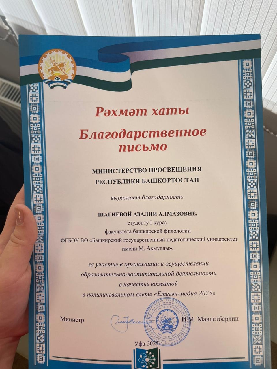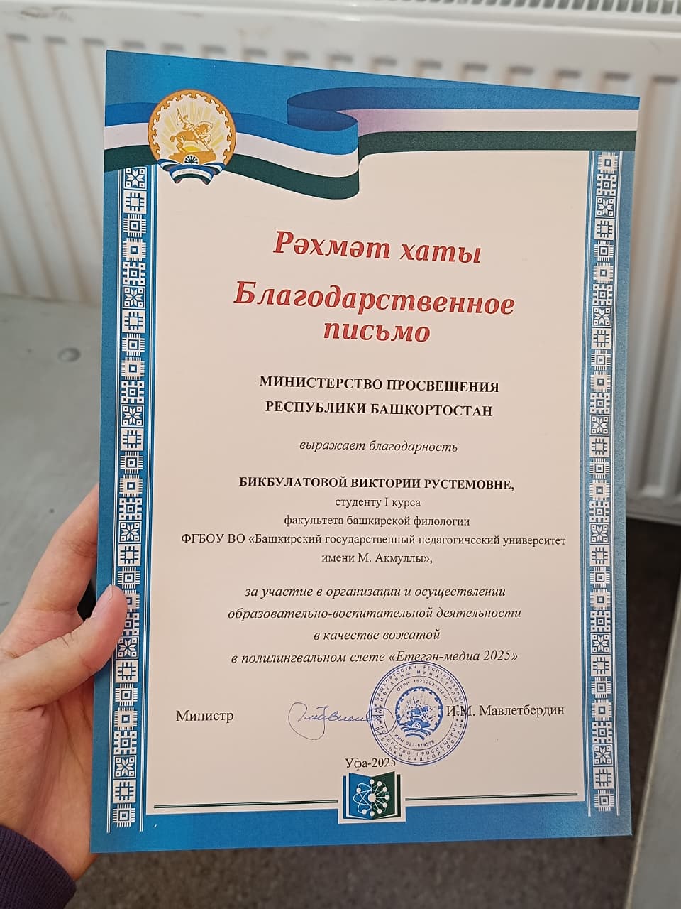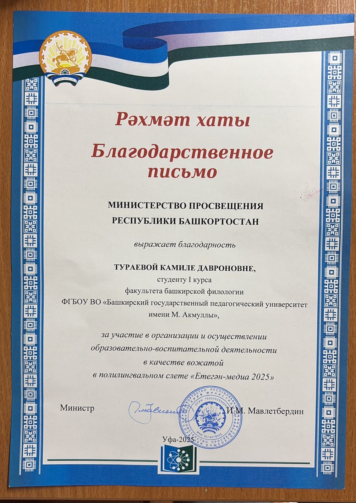 Мы надеемся и верим, что приобретённый опыт будет полезен нашим студентам в их будущей профессии. Отдельная благодарность за поддержку смены «Етегән» выражается Шагиевой Азалии, Бикбулатовой Виктории, Тураевой Камиле, Даутовой Элине и Бурангуловой Гузель!