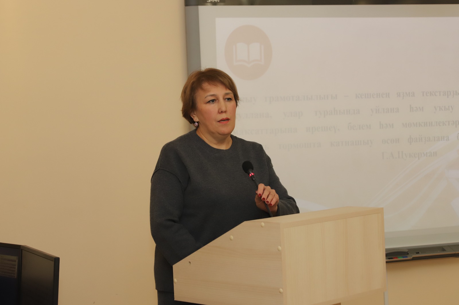 Заведующая кафедрой башкирского языка и литературы, кандидат педагогических наук, доцент Салима Тагирова представила членам жюри учебное пособие «Башҡорт теле һәм әҙәбиәте дәрестәрендә уҡыу грамоталылығы: күнегеүҙәр йыйынтығы», которое получило высокую оценку и было удостоено диплома 1 степени.