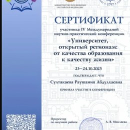 23 октября 2025 года доцент кафедры тюркской и восточной филологии Аксмуллинского университета Р.А. Султакаева успешно выступила на IV Международной научно-практической конференции «Университет, открытый регионам». Мероприятие проходило в онлайн-формате на базе Российского государственного педагогического университета им. А.И. Герцена.