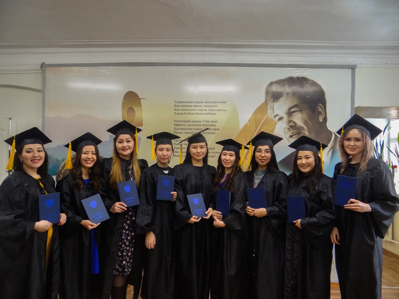 Выпускников поздравила и вручила дипломы декан ФБФ, д.ф.н., профессор Самситова Луиза Хамзиновна. Также выпускников поздравили заведующая кафедрой башкирского языка и методики его преподавания, к.п.н., доцент Тагирова Салима Айбулатовна, заведующая кафедрой башкирской литературы и культуры, к.ф.н., доцент Галина Галима Галимьяновна, к.ф.н., доцент кафедры башкирской литературы и культуры Алибаев Заки Арсланович. Церемония прошла в торжественной и одновременно удивительно теплой атмосфере. Поддержать выпускников и разделить этот волнующий момент пришли друзья, родные и близкие.