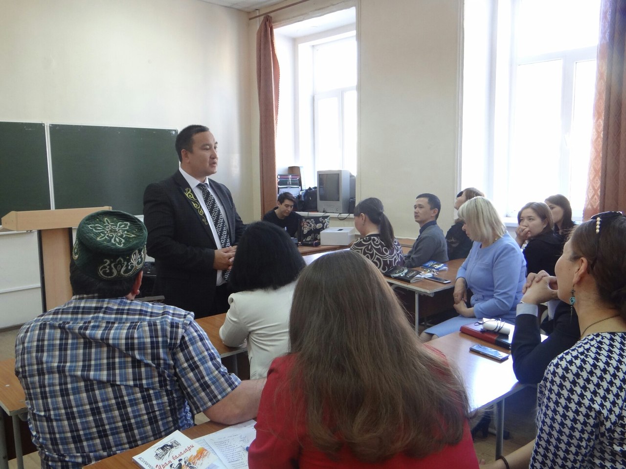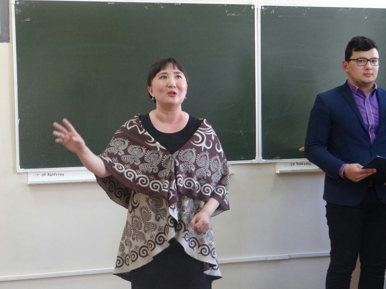 Выступление А.А. Бияздыковой было посвящено когнитивной модели "ана" ("мать") в произведении А. Баймухаметова "Не оставляй, мама". Студенты и преподаватели задавали интересующие их вопросы.