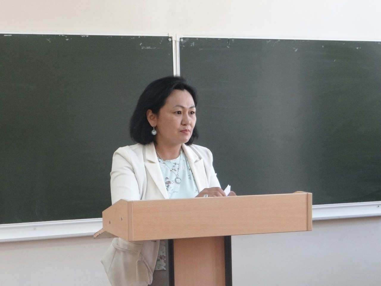 Зам.декана по ВР, старший преподаватель Кильмакова Г.Н. выступила с докладом на тему: "Отражение проблем современного общества в повести А. Баймухаметова "Не оставляй, мама".