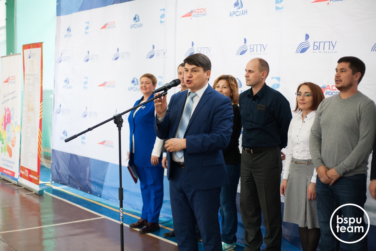 23 октября в спортивном зале БГПУ им.М.Акмуллы состоялось открытие спартакиады. В торжественной части с поздравлениями выступали: начальник отдела поддержки молодёжных инициатив Вито Сабиров, старший преподаватель кафедры прикладной информатики и информационной безопасности РЭУ А. В. Данилов, профессор, декан ФФК А. Ю. Костарев, руководитель подразделения управления по воспитательной работе и молодежной политике М. В. Балихин.