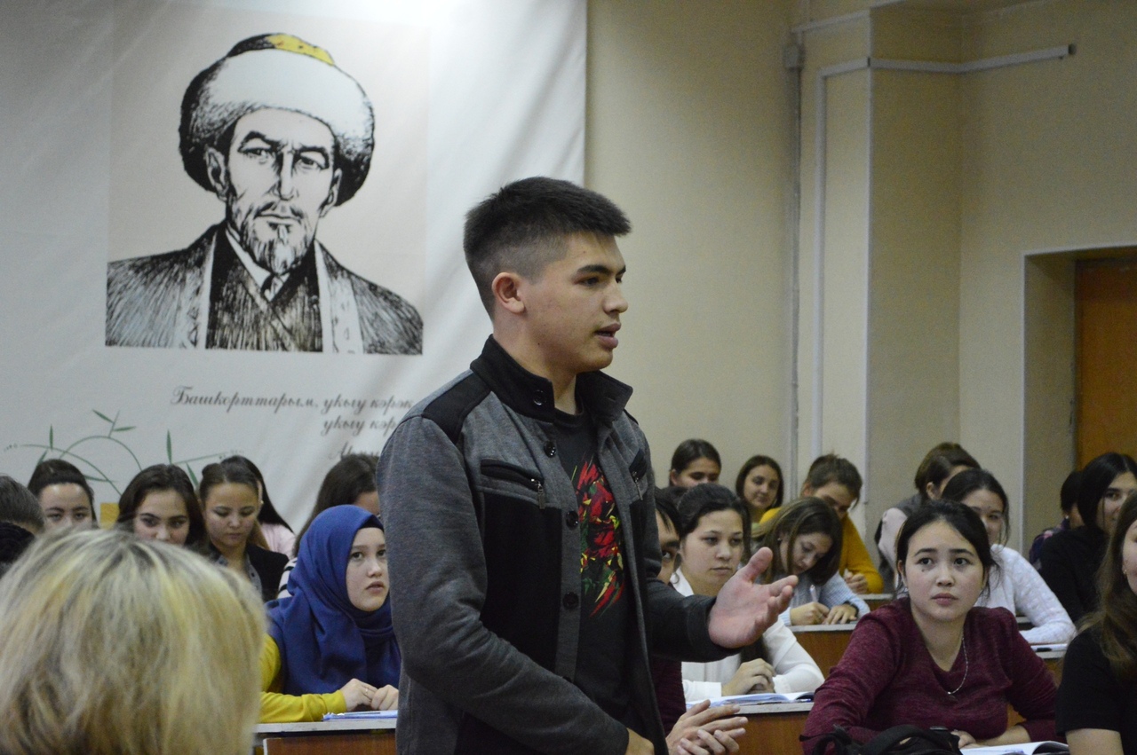 Целью встречи было обсуждение насущных вопросов, которые поднимались в произведении «Китһәм дә мин, йырым ҡала». Студенты активно задавали интересующие вопросы автору, выразили свое мнение о произведении.