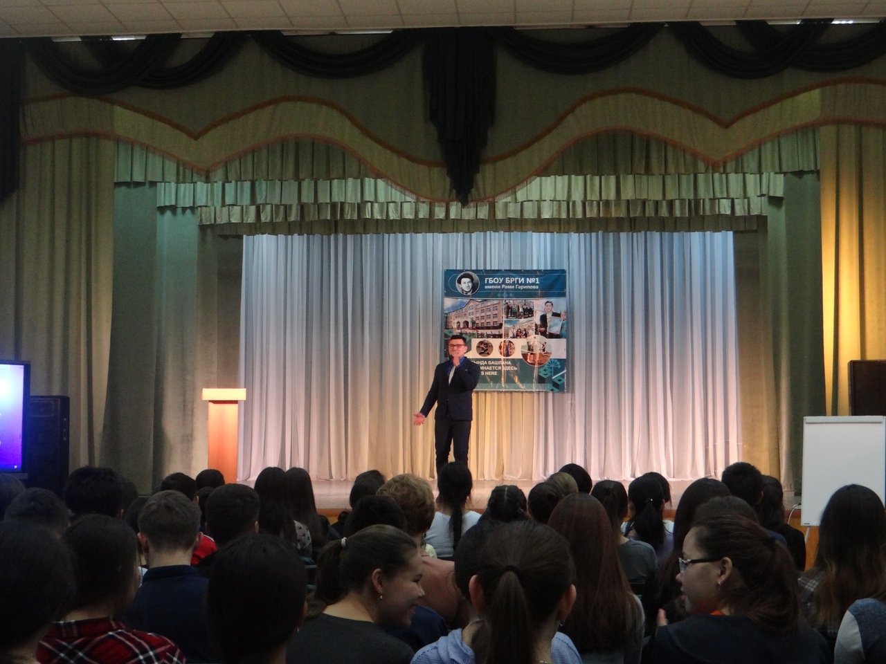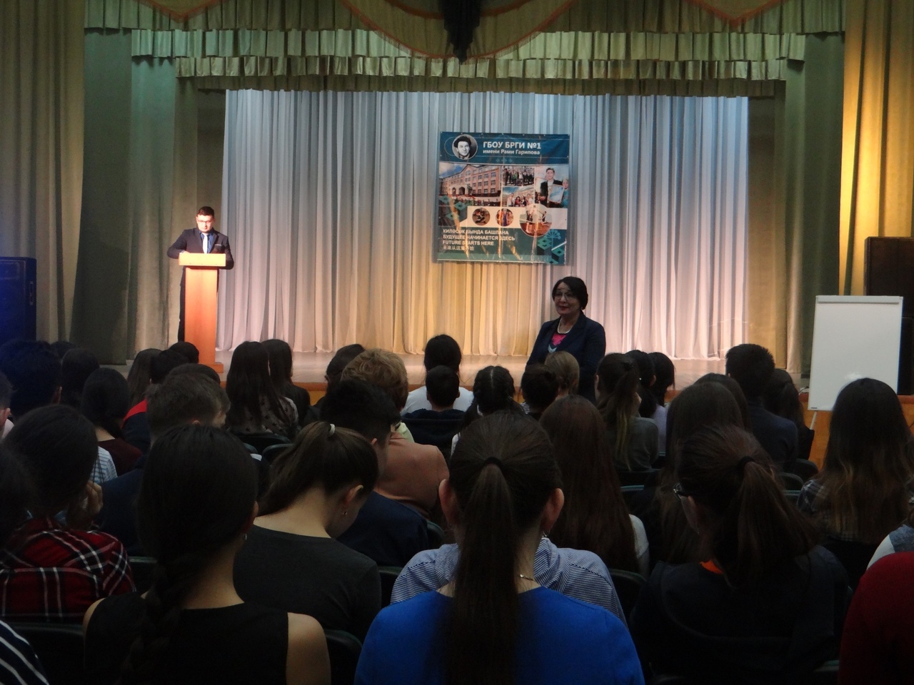 Преподаватели ознакомили ребят с правилами поступления, особенностями учебного процесса, а также рассказали о внеучебной деятельности нашего вуза и факультета. Председатель студенческого совета Мухаметгалиев Тимур познакомил с активом факультета, рассказал о студенческой жизни, про стипендии, Идрисов Фадис -  про спортивную деятельность факультета, Сагынбек Ильяс – о международном сотрудничестве факультета, о возможности стажировок в другие страны, Баймурзин Идель – о науке, об общежитии, Киньябаев Инсур и Абдрахманов Альгиз представили культурную жизнь факультета, Азаматов Байрас ознакомил школьников с общественной деятельностью факультета, рассказал о проектах. После продуктивной дискуссии, студенты показали яркий концерт.