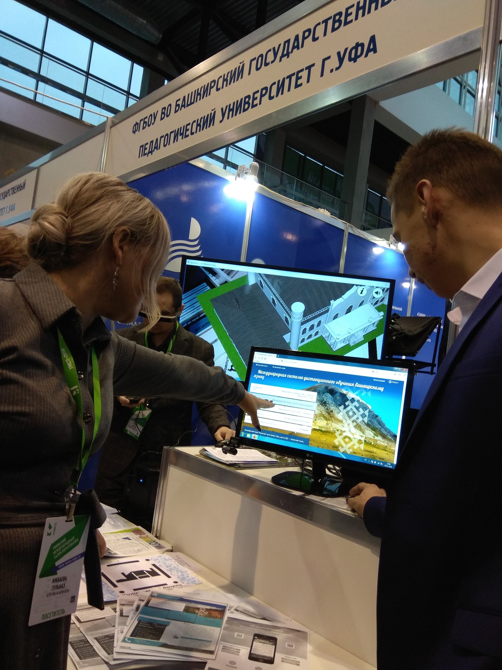 На образовательной площадке БГПУ им. М. Акмуллы факультет башкирской филологии представил инновационный проект «Международная система дистанционного обучения башкирскому языку». Студенты рассказывали про данную систему обучения, показали сайт, ознакомили с трехуровневой системой обучения, где каждый из этих уровней включает грамматическую справку, словарь, видеоситуации на изучаемую тему и проверочные тесты. Помимо этого, у участников была возможность воспользоваться башкирско-русским словарем, загрузить на интерактивную карту республики фотографии своих любимых мест, погрузиться в медиатеку интернет-ресурсов для наиболее полного изучения не только башкирского языка, но и культуры, литературы и традиций башкирского народа.