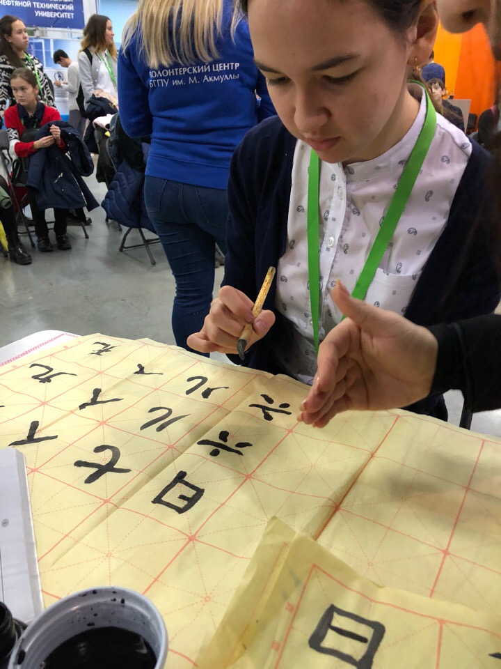 Неподдельный интерес вызвала зона каллиграфии, где студенты факультета башкирской филологии предлагали посетителям научиться красиво и правильно писать на башкирском языке при помощи пера и чернил. В лаунж-зоне был проведен мастер-класс по китайской каллиграфии. Как известно, в Китае каллиграфия издавна является одним из традиционных видов высокого профессионального искусства, наряду с живописью. Она гармонично сочетает в себе противоположности: ровные и изогнутые линии, бледность и насыщенность штрихов, а также круглые и квадратные элементы. Не зря в китайских учебных заведениях через уроки каллиграфии обучают младшее поколение эстетическому вкусу и умению ощущать настоящее искусство. Участники салона образования смогли познакомиться с особенностями и основными приемами традиционной китайской каллиграфии, узнали о традиционных китайских материалах и инструментах для каллиграфии.