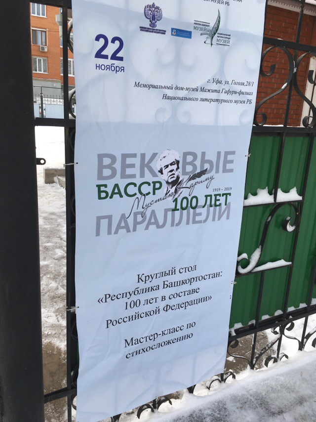22 ноября в мемориальном доме-музее М. Гафури прошел мастер-класс по стихосложению, который организован в рамках проведения цикла мероприятий "Вековые параллели", посвященных 100-летию образования Республики Башкортостан и 100-летию со дня рождения народного поэта Башкортостана М. Карима. На данном мероприятии приняли участие представители литературно-творческого объединения "Тулҡын" (рук. к.ф.н., доцент Г.М. Набиуллина), а также представители литературно-творческого объединения "Шоңҡар" (БГУ).