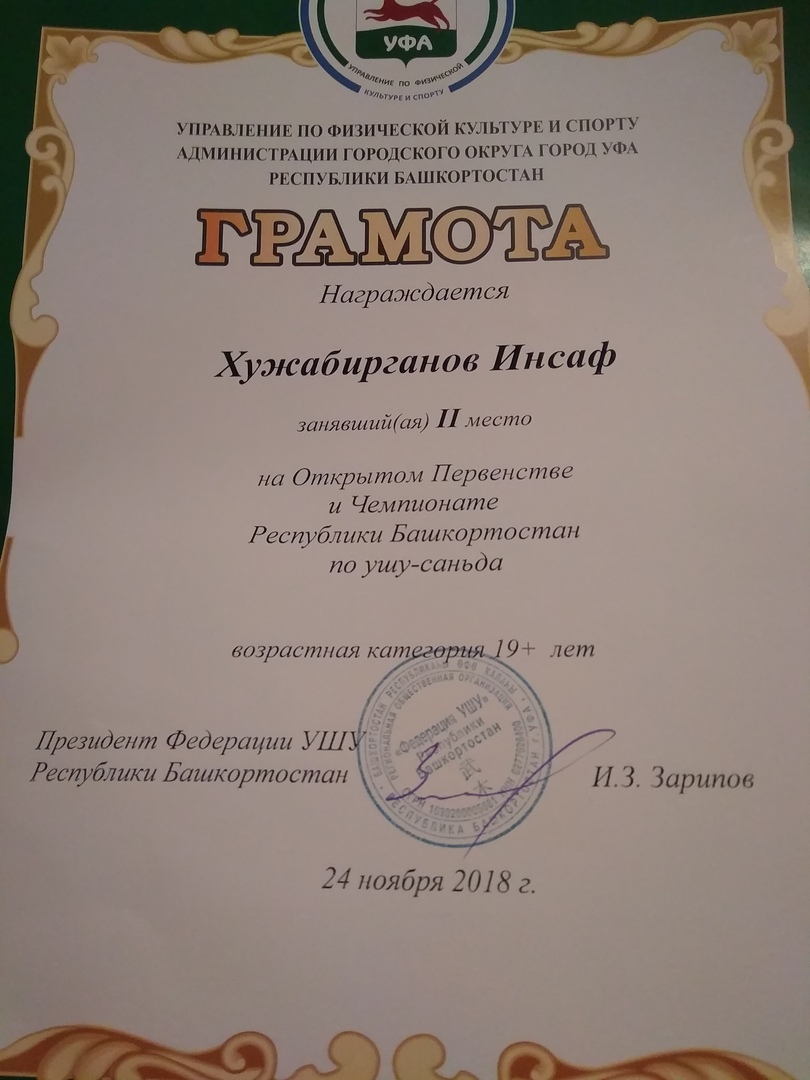 Инсаф Хужабирганов ( маг.1 к) занял почетное II место по ушу-саньда в Открытом первенстве и Чемпионате Республики Башкортостан в возрастной категории 19+ лет.