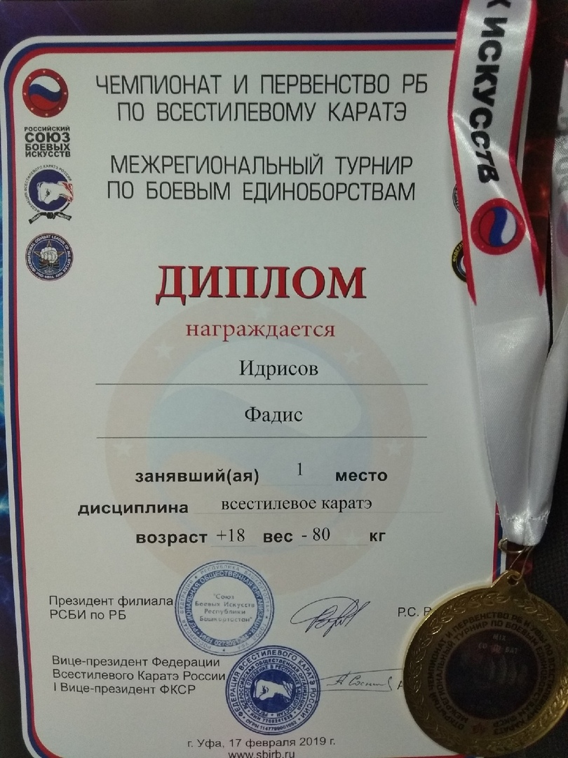 Студент факультета башкирской филологии стал Чемпионом РБ по всестилевому каратэ
