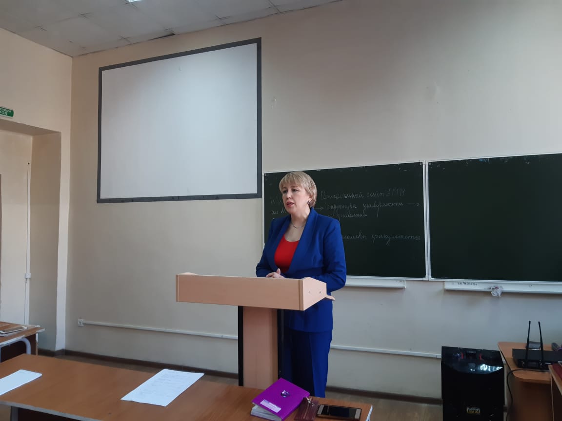 Заместитель декана по воспитательной работе А.Ю. Куланчин рассказал о мероприятиях воспитательного характера, прошедших в университете и на факультете, в которых приняли участие студенты. Также он ознакомил с правилами внутреннего распорядка в вузе, напомнил о соблюдении режима дня.