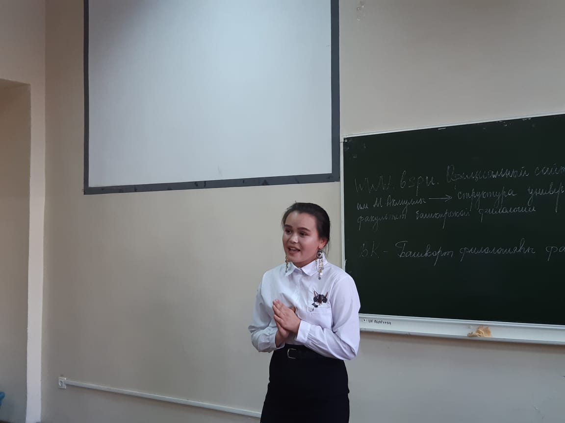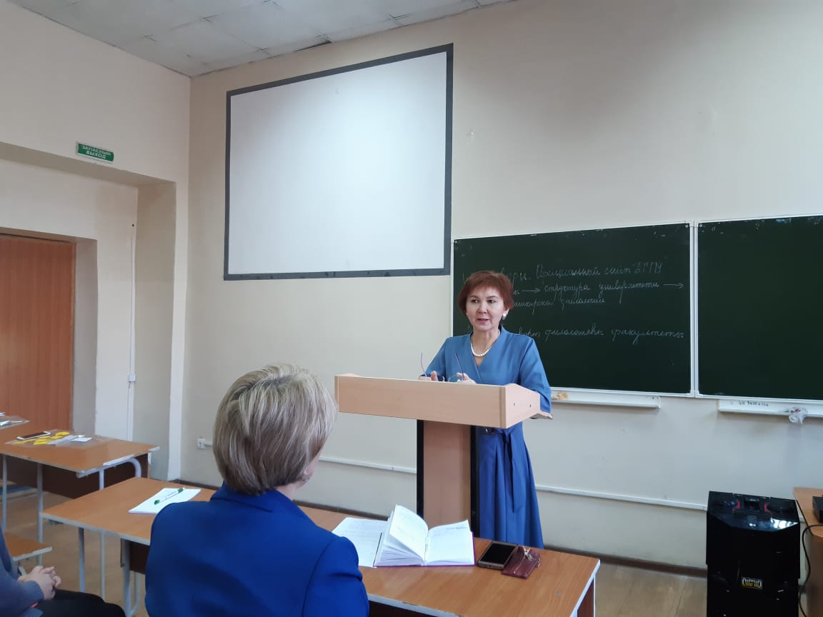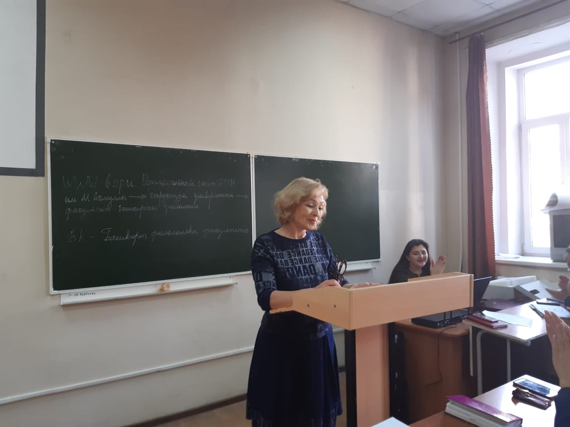 С приветственным словом выступила и. о. декана факультета башкирской филологии, заведующая кафедрой башкирского сравнительно-сопоставительного языкознания, к.п.н., доцент С. А. Тагирова. Она рассказала о важности настроя первокурсников на обучение, отметила востребованность специальности, подчеркнула о важности влияния, контроля родителей при выполнении домашней самостоятельной работы при изучении теоретических вопросов дисциплин, выполнении контрольных работ, подготовки к зачетам, экзаменам и о том, что при совместной работе с деканатом данные усилия дадут хорошие результаты в успеваемости студентов на первом и последующих курсах.