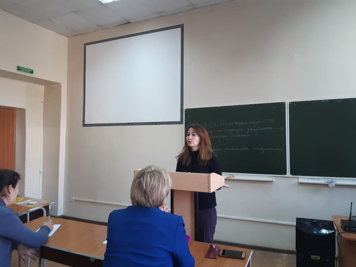 Заместитель декана по научной работе Р. А. Султакаева рассказала родителям о действующем сайте университета, о возможностях участия студентов в научной работе.