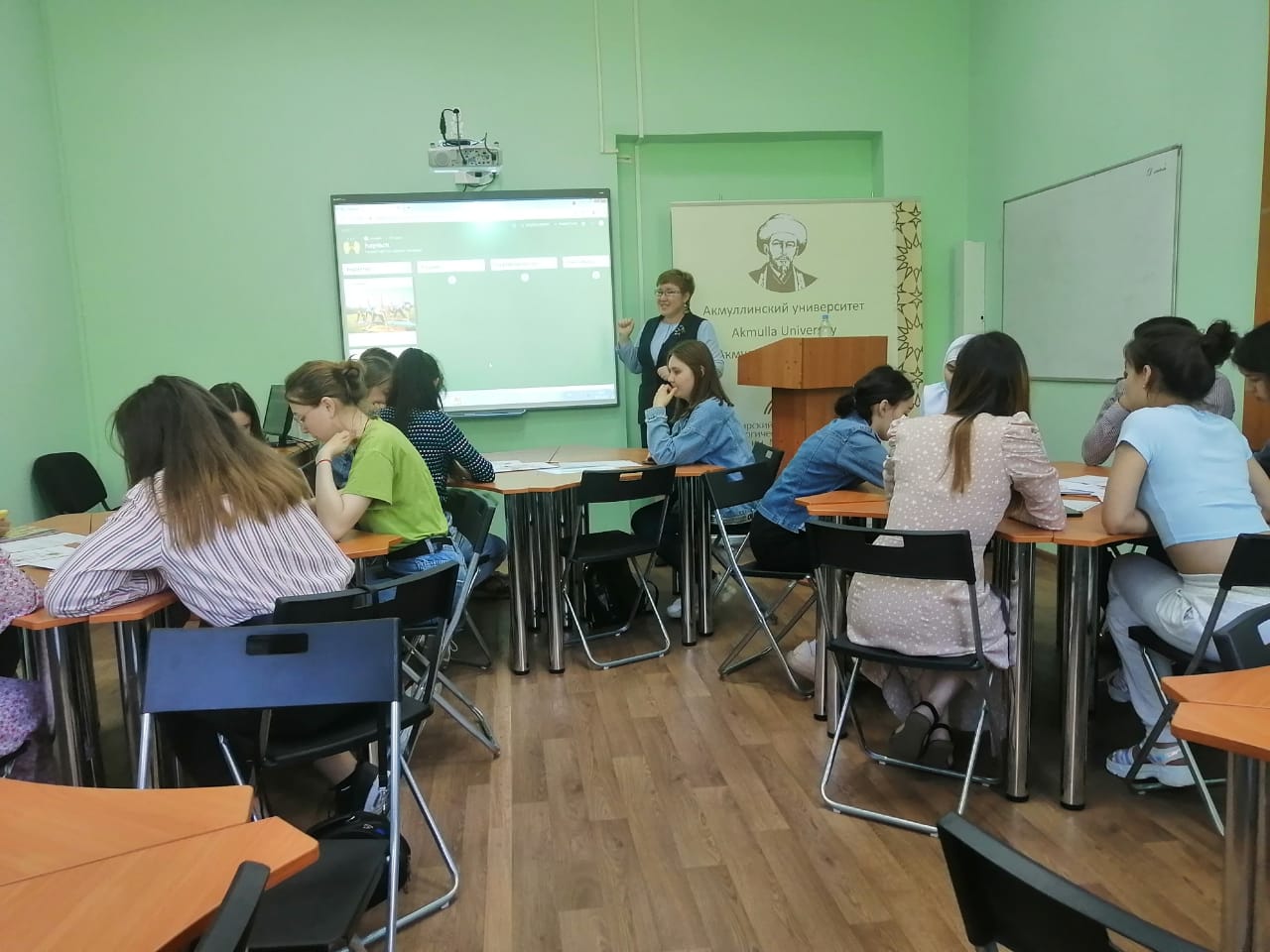 19 мая на факультете башкирской филологии в рамках проекта «Мы сами - башкиры» прошёл мастер-класс на тему «Тематические карты развития речи как эффективный прием формирования коммуникативной компетенции» победителя конкурса «Учитель года башкирского языка и литературы столицы Башкортостана – 2021», учителя башкирского языка и литературы лицея № 58 А.Р. Газизовой со студентами II курса. Альфия Рауфовна показала возможности использования интерактивной онлайн-доски Padlet на уроках башкирского языка, продемонстрировала пути использования мнемотехники, способы усвоения слов через песню, эффективность запоминания аффективно окрашенных слов в разных эмоциональных состояниях.