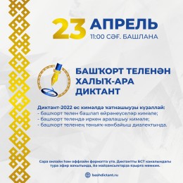 23 апреля в республике пройдёт ежегодная акция - Международный диктант по башкирскому языку. Одной из площадок проведения диктанта станет Башкирский государственный педагогический университет им. М. Акмуллы. Регистрация на сайте: https://bashdictant.ru/