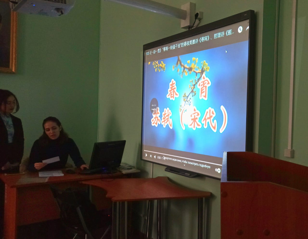 В рамках мероприятия студенты 5 курса ИФОМК представили свои презентации и рассказали о зарождении китайской поэзии в Древнем Китае. Прозвучали и стихотворения  известных китайских поэтов и писателей современности.