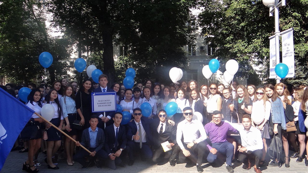 На факультете башкирской филологии празднование Дня знаний началось с самого утра в 6 корпусе БГПУ им. М. Акмуллы. Декан факультета, д.ф.н., профессор Луиза Хамзиновна открыла торжественное мероприятие, поздравила первокурсников с началом нового учебного года и нового статуса. Заведующие кафедрами познакомили студентов с профессорско-преподавательским составом. Далее мероприятие проходило на площади им. М. Акмуллы, сопровождающееся красочным концертом.