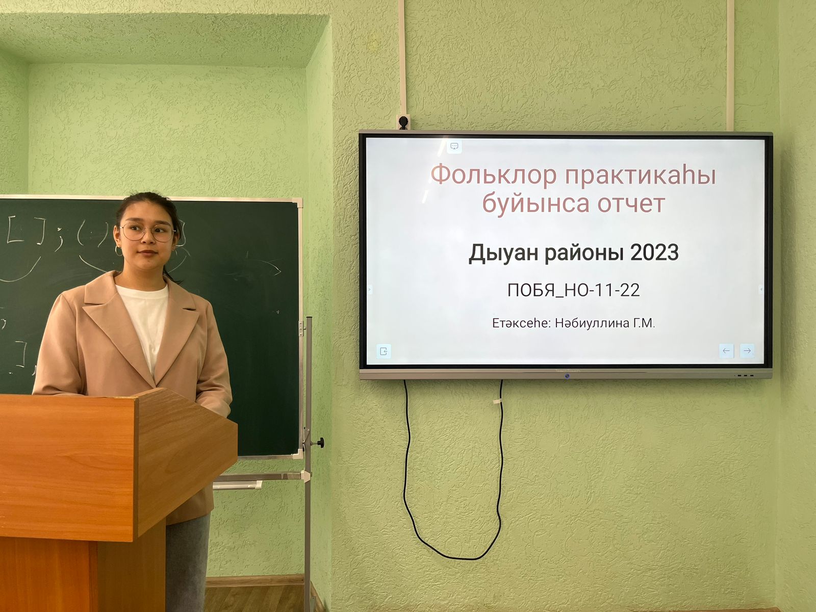 Студенты продемонстрировали собранный видеоматериал, анализ материалов изложили в своих отчетах и выступлениях, делились своими впечатлениями и были благодарны университету, факультету, преподавателям и всем информантам, руководству районов, которые приняли студентов-практикантов за предоставленную возможность. В целом, выездная фольклорная практика для студентов стала ценным опытом, который позволил им проникнуться осознанием уникальности фольклорных традиций отдельных районов, где компактно проживает башкирский народ.