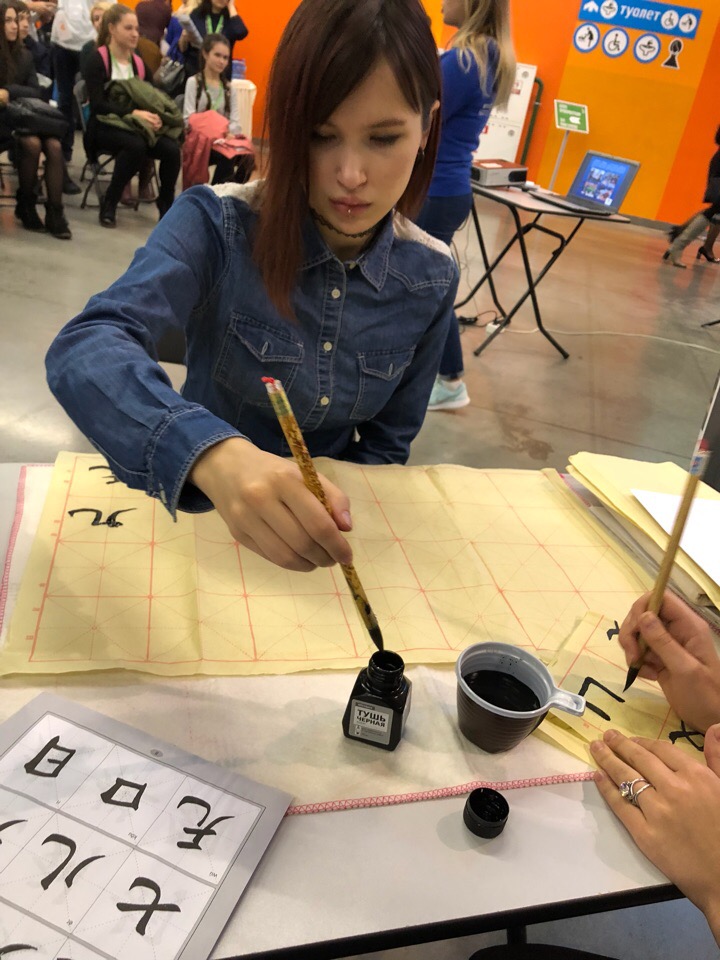 Неподдельный интерес вызвала зона каллиграфии, где студенты факультета башкирской филологии предлагали посетителям научиться красиво и правильно писать на башкирском языке при помощи пера и чернил. В лаунж-зоне был проведен мастер-класс по китайской каллиграфии. Как известно, в Китае каллиграфия издавна является одним из традиционных видов высокого профессионального искусства, наряду с живописью. Она гармонично сочетает в себе противоположности: ровные и изогнутые линии, бледность и насыщенность штрихов, а также круглые и квадратные элементы. Не зря в китайских учебных заведениях через уроки каллиграфии обучают младшее поколение эстетическому вкусу и умению ощущать настоящее искусство. Участники салона образования смогли познакомиться с особенностями и основными приемами традиционной китайской каллиграфии, узнали о традиционных китайских материалах и инструментах для каллиграфии.