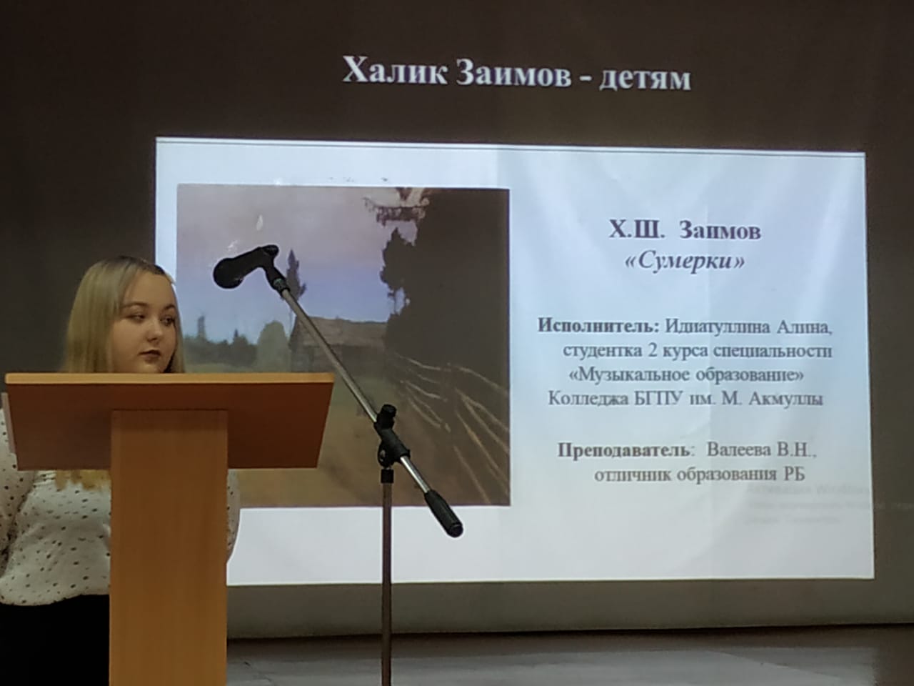 В рамках декадника специальности  «Музыкальное образование» прошла научно-практическая конференция «Музыкальное наследие Башкортостана. Халик Заимов», посвященная  105- летию со дня рождения композитора. В конференции приняли участие студенты специальности «Музыкальное образование», преподаватели ДМШ №1, 13  и  их ученики  - лауреаты  республиканского конкурса-фестиваля  им. Х. Заимова,  а также выпускники нашего  учебного заведения - учитель музыки Башкирского лицея №136 им. М.Искужина -  Кагарманова  Д.А. и ветеран педагогического труда Хусаинова Р.Х.   Выступления  участников конференции раскрыли многогранный талант композитора, преподавателя и общественного деятеля.  Музыкальные произведения Х. Заимова, прозвучавшие в исполнении преподавателей колледжа и ДМШ №13, а также студентов, детей,  расширили музыкальный кругозор слушателей. Директор ДМШ  им. Халика Заимова,  Шадмонова Г.З. пригласила студентов и преподавателей колледжа к сотрудничеству, что окажет благотворное влияние на профориентационную работу с будущими  абитуриентами.