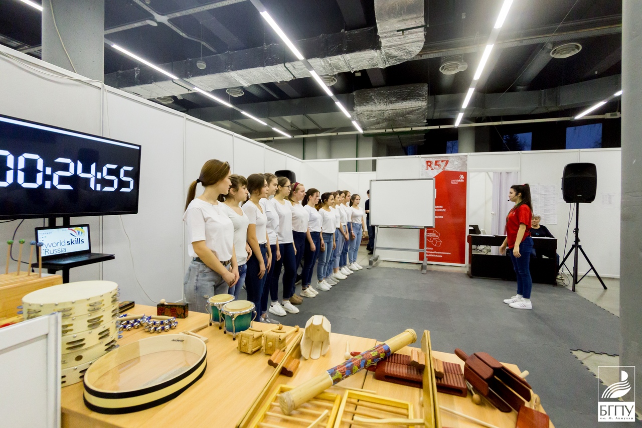 В компетенции «Преподавание музыки в школе» на ВДНХ-Экспо прошли соревнования по модулям «Аранжировка песни» (где конкурсанты создавали аранжировку песни с помощью компьютерной программы и MIDI клавиатуры) и «Ритмическая импровизация» (где было необходимо организовать репетицию и продемонстрировать концертное исполнение ритмической импровизации на детских шумовых инструментах с использованием элементов хореографии).