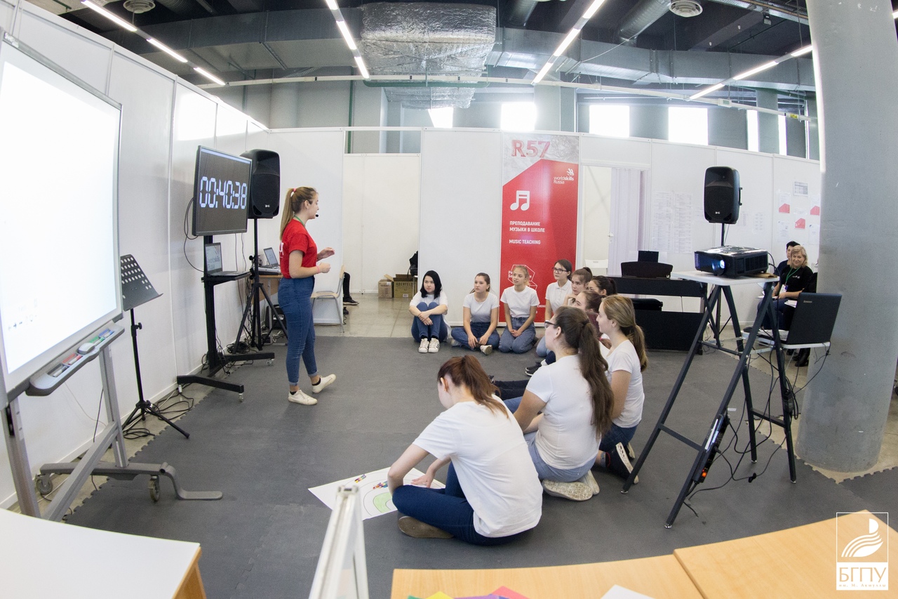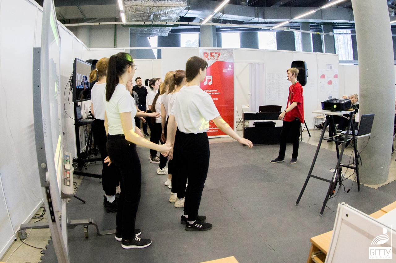 На площадке компетенции «Преподавание музыки в школе» участникам было нужно провести учебное занятие по музыке на тему «Новая музыкальная эра».