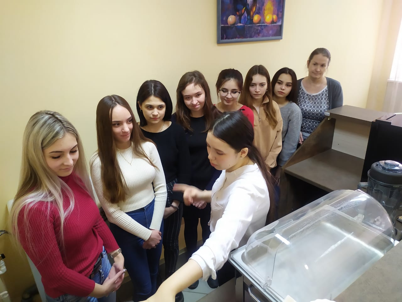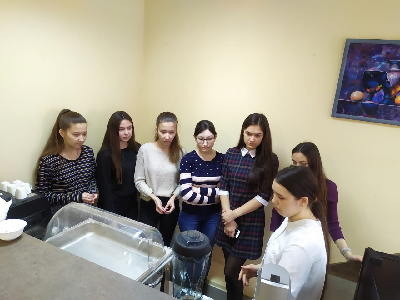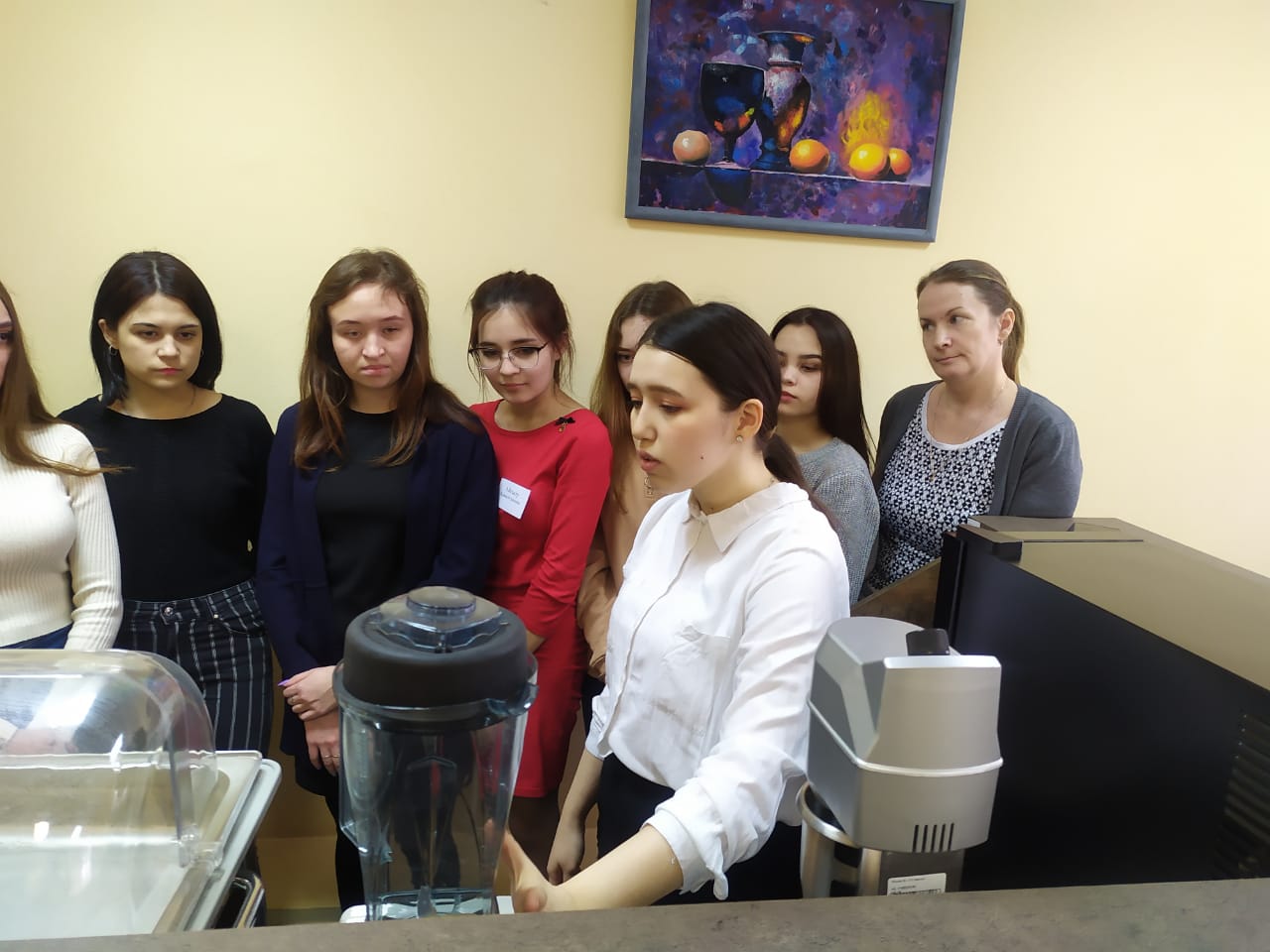 12 марта в рамках декадника специальности «Гостиничный  сервис» прошло открытое занятие «Учебный бар». Студентка выпускной группы 9ГС-31-17(20) Хайретдинова Малика  ознакомила студентов второго курса с оборудованием учебного бара Колледжа.Студентам группы 9ГС-21-18(21) был продемонстрирован метод работы в баре, барная посуда: чашки, бокалы, стаканы и т.д. и барный инвентарь: лёдогеннератор, миксер, комбайн, тепловой шкаф, винный шкаф и кофемашину со встроенным капучинатором. Также они изучили процесс приготовления молочных, фруктовых коктейлей и кофе, такого как эспрессо, латте, капучино, гляссе. Студентка группы 9ГС-31-17(20) Домнич Ульяна рассказала о работе официантом в ресторане и баре гостиничного комплекса «Президент Отель Уфа». Все преподаватели были приглашены на кофе-брейк.