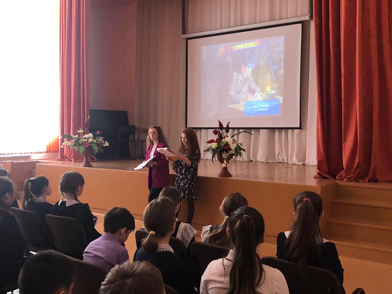 В рамках празднования 75-летия Великой Победы 18 марта 2020 г. в МБОУ Школа № 34 прошел  урок  «Песни военных лет».  Провели этот урок   студенты-практиканты четвертого  курса  Колледжа БГПУ им. М. Акмуллы специальности 53.02.01 «Музыкальное образование» -  Артамонова Екатерина, Гайсина Дина, Кутлиахметова Камилла, Тимергалиева Зарина. Прослушивая песни о Великой Отечественной войне, мы словно переживаем чувства солдат, защищавших Родину в боях, чувства их матерей и детей, ожидавших их возвращения, и то неописуемое состояние счастья, которое испытали все жители Советского Союза 9 мая 1945 года.Ветеранов все меньше и меньше с каждым годом. Они уходят, оставляя отвоеванную землю на нас. И завещают беречь ее. Этот мир такой хрупкий и прекрасный.
