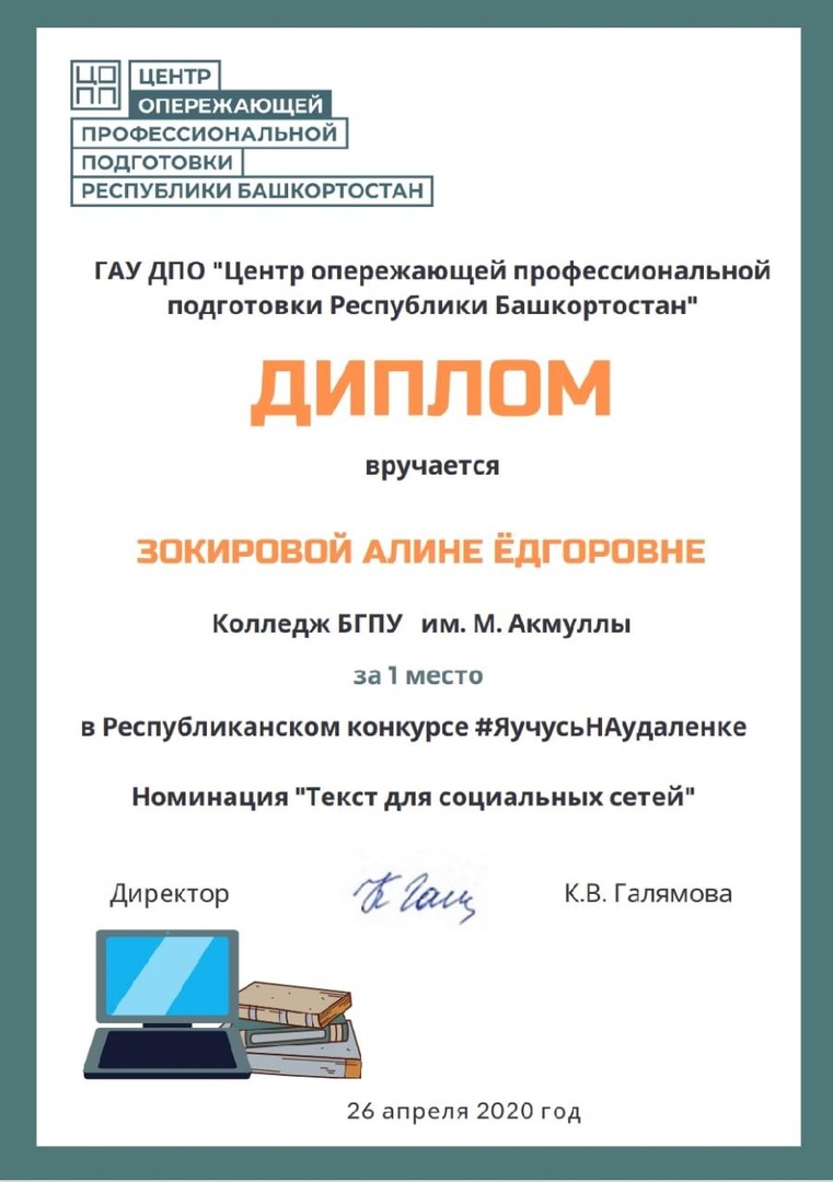 Студенты Колледжа БГПУ им. М. Акмуллы стали победителями Республиканского конкурса #Яучусьнаудаленке