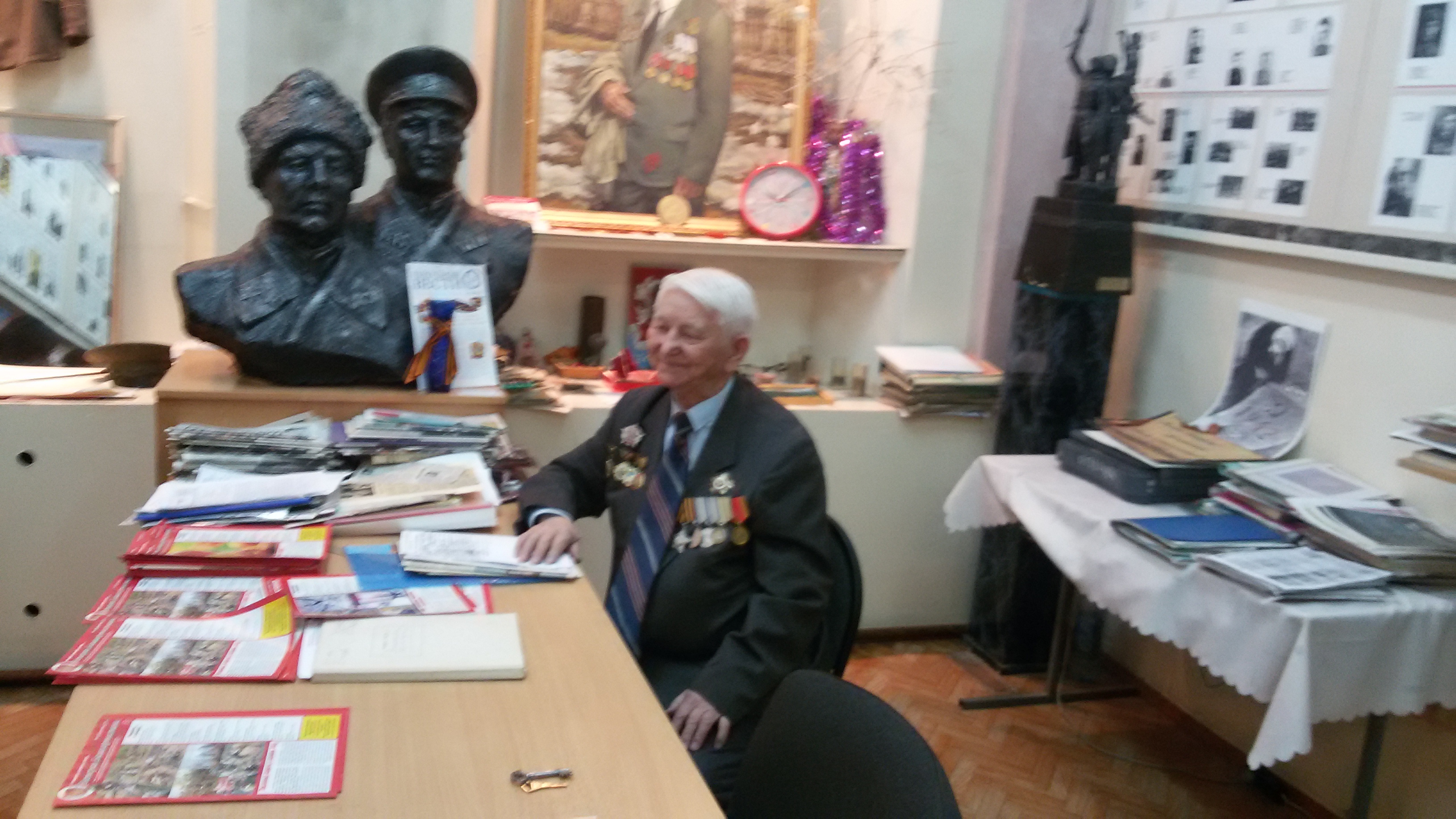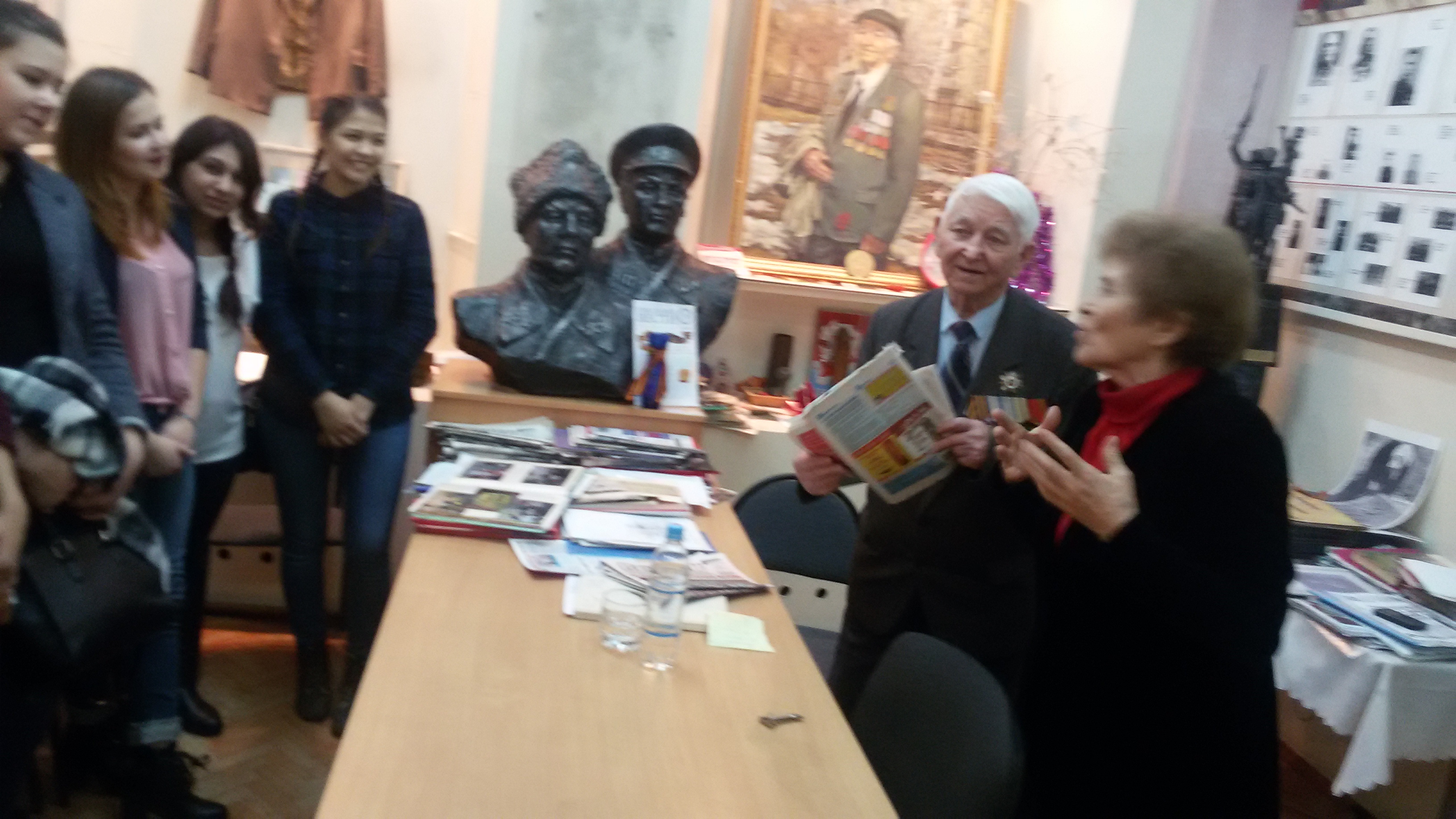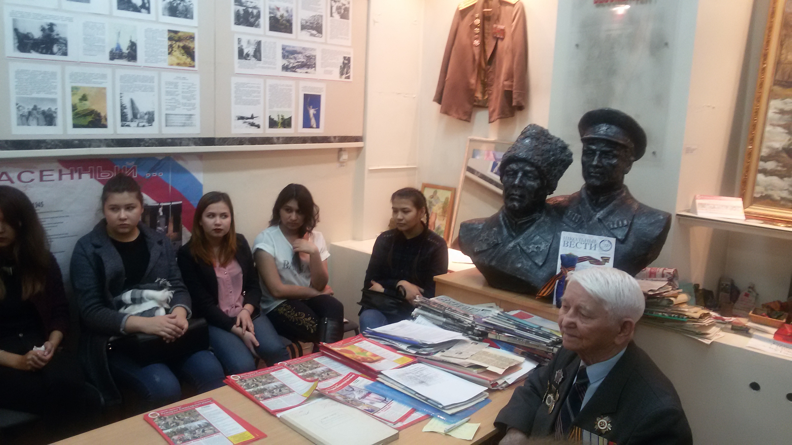 11 апреля 2017 года в музее 214-ой дивизии 7-го учебного корпуса БГПУ им.М.Акмуллы состоялась встреча студентов колледжа специальности «Библиотековедение» с участником Великой Отечественной Войны Хасаном Рахимовичем Хуснуризаловым. Хасан Рахимович - председатель Совета ветеранов 214-й стрелковой дивизии. Он прошел войну, участвовал в Сталинградской битве, удостоен многих наград, в том числе ордена Отечественной Войны I степени, двух медалей «За отвагу», медалей «За оборону Сталинграда», «За победу над Германией» и многих других. Хасан Рахимович рассказал студентам Колледжа БГПУ им. М.Акмуллы о своем пути на войне, куда он попал добровольцем в 17 лет. Главным на войне он считает дисциплину, придерживаться которой должна армия. Сам же Хасан Рахимович помнит каждый день войны. Без затруднений он может назвать любого солдата, которого знал, не ограничиваясь фамилиями и именами. Также, он показал ребятам несколько фотографий с войны. Несмотря на серьезные психологические переживания, Хасан Рахимович очень много улыбается, что делает его моложе, и это в его-то 95-летнем возрасте. Полноту военной картине придали песни, исполненные студентами нашего колледжа специальности «Музыкальное образование».