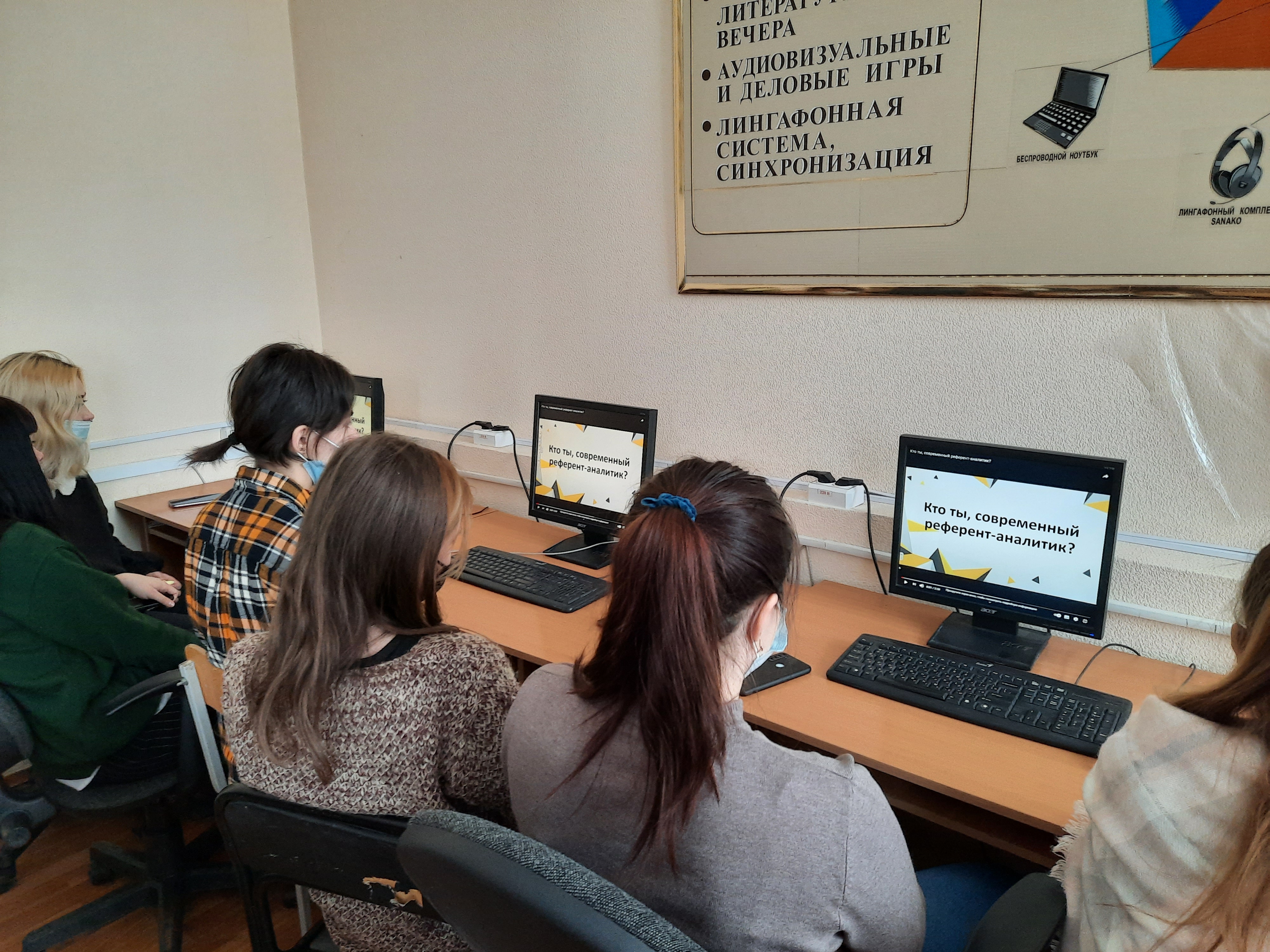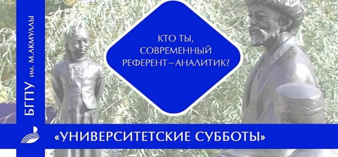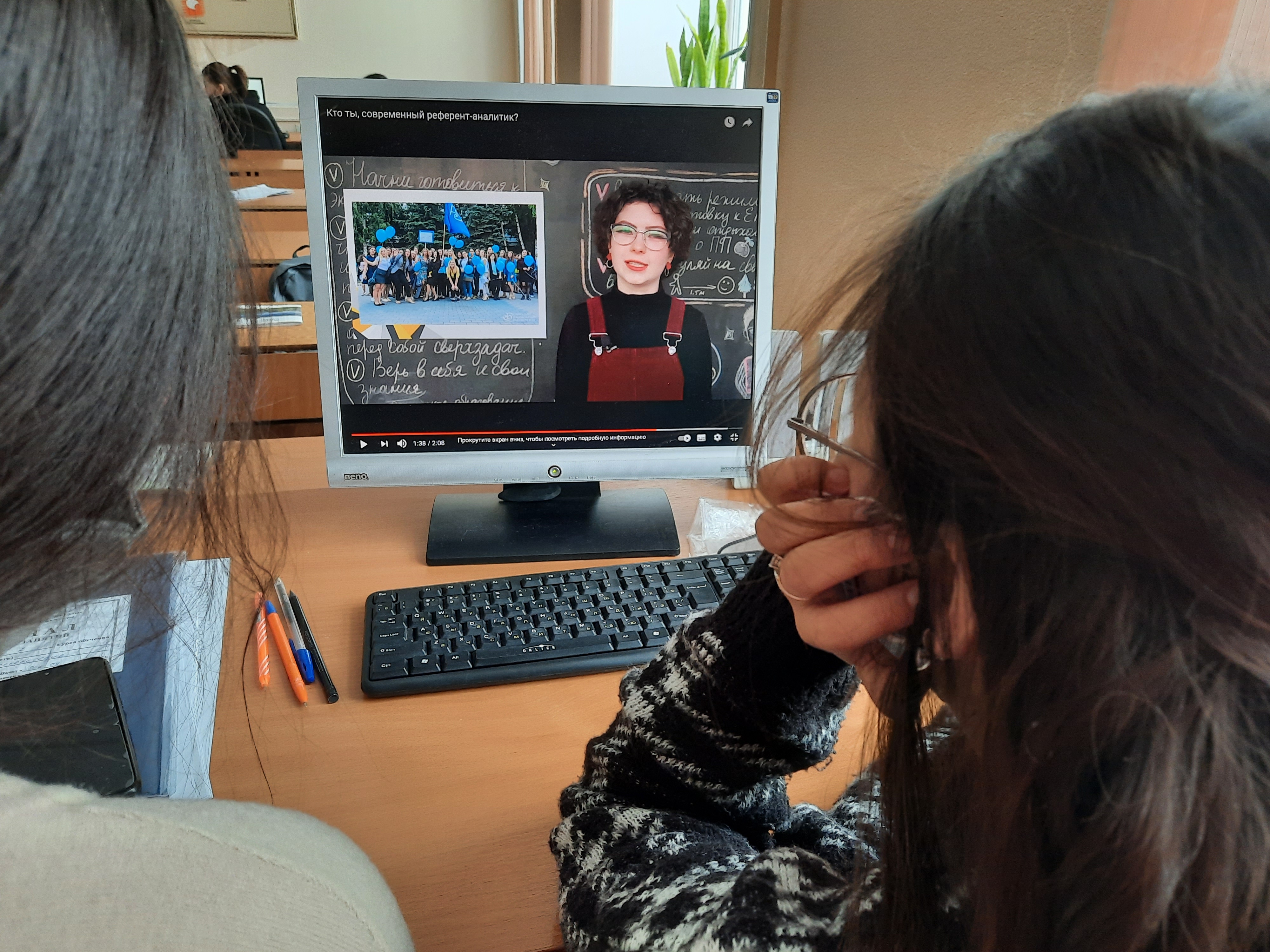 27 февраля преподаватели колледжа В.Я. Носова и Е.Н. Плахутина провели со студентами специальности «Библиотековедение» «университетскую» субботу. В рамках взаимодействия с кафедрой культурологи и социально-экономических дисциплин Института исторического, правового и социально-гуманитарного образования БГПУ им. М.Акмуллы студенты колледжа с интересом познакомились с роликом «Кто ты, современный референт-аналитик?», подготовленным студентами университета под руководством кандидата исторических наук, доцента кафедры культурологии и социально-экономических дисциплин Р.А. Гильмияновой. Будущие абитуриенты узнали о такой необходимой профессии XXI века как «референт-аналитик информационных ресурсов». В информационном обществе специалисты данного профиля будут играть одну из ключевых ролей, от них будет зависеть как общий уровень информационной культуры социума, так и информационная грамотность отдельных категорий граждан.