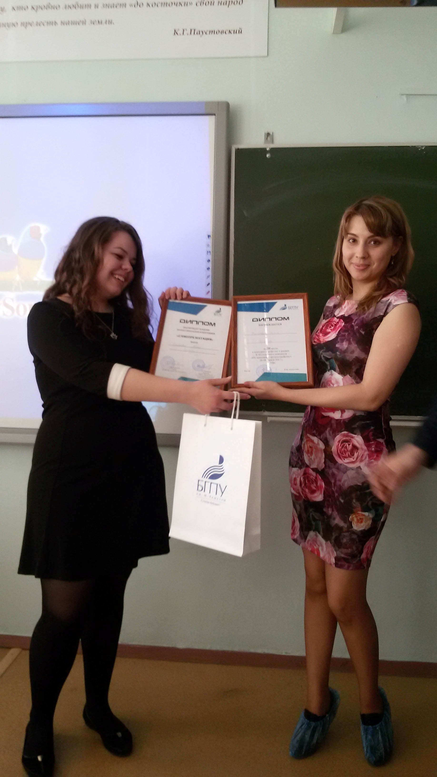 В конкурсе результатов практики от колледжа участвовали 5 студентов: Узянбаева Юля, Лазарева Дарья, Лазарева Марина (группа 9ЗИО-31), Лизон Елена (группа 9ФК-41), Гумерова Розалина (группа 9ИЗО-51). Все девушки выступили достойно и получили сертификаты участника, а Гумерова Розалина (руководитель Д.Р. Зайлялова) среди 11 участников заняла 3 место.