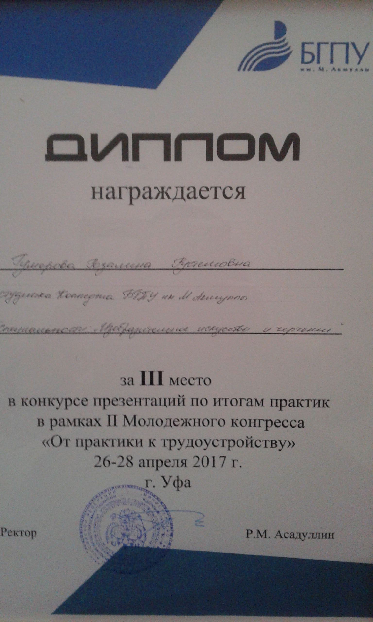 Студенты колледжа БГПУ им. М. Акмуллы приняли активное участие в мероприятиях молодежного конгресса «От практики к трудоустройству», который прошел в университете 26-28 апреля 2017 года.