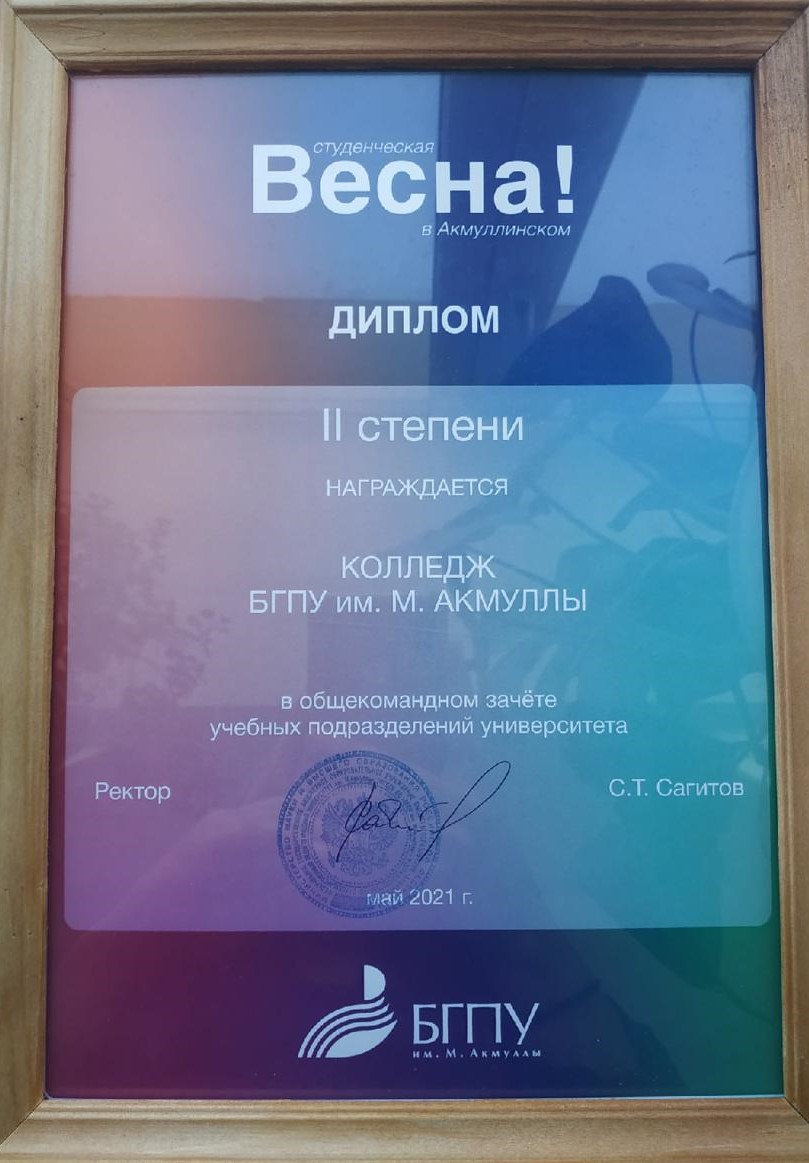 И по результатам в общекомандном зачёте колледж БГПУ им.М.Акмуллы занял II место!