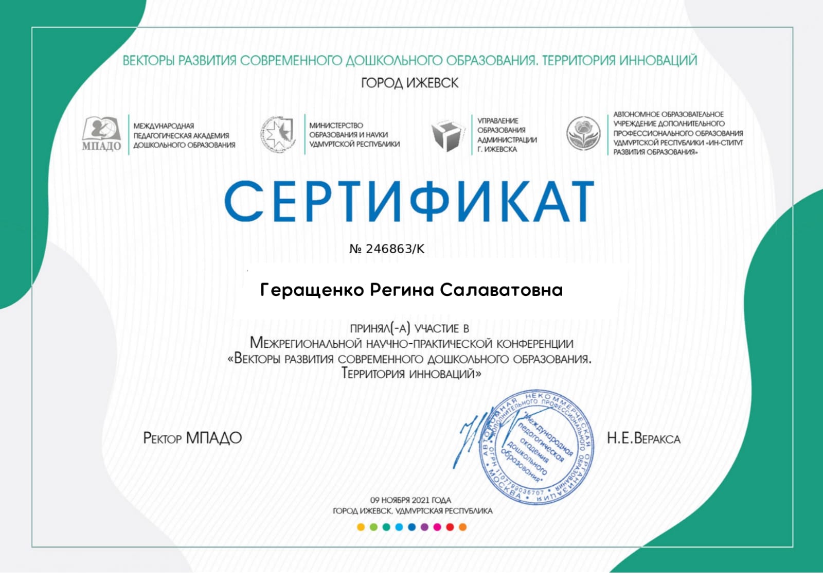 9 ноября 2021 года состоялась Межрегиональная научно-практическая конференция «Векторы развития современного дошкольного образования. Территория инноваций».