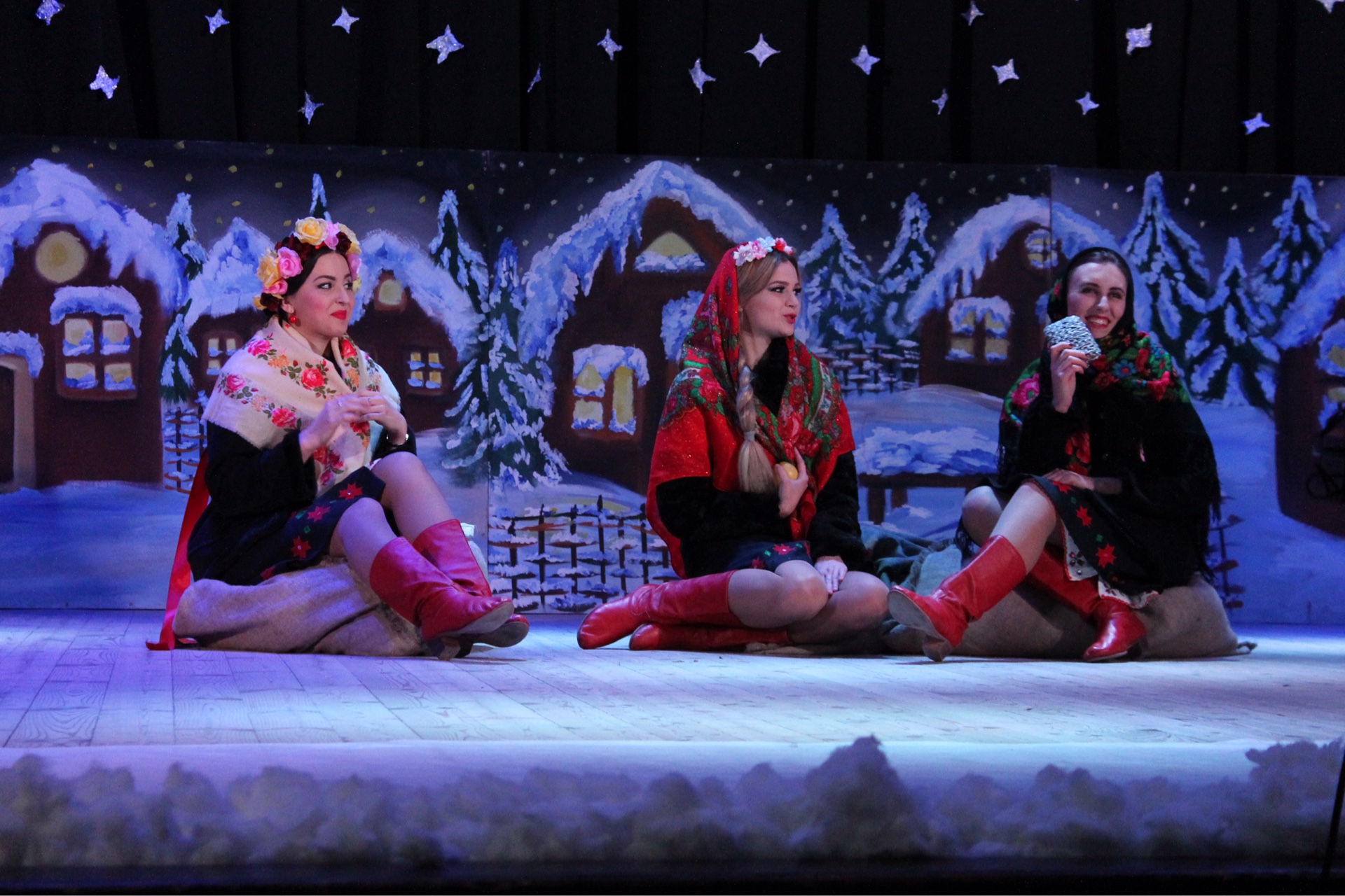 22 декабря 2016 г., в преддверии Нового года, для первокурсников Колледжа БГПУ им. М.Акмуллы состоялась первая премьера музыкального спектакля по повести Н.В.Гоголя "Вечера на хуторе близ Диканьки". Актёрский состав состоял из активистов - студентов колледжа и университета. Зритель погрузился в волшебную атмосферу Диканьки, где увидел избалованную красавицу Оксану, ее грозного отца Чуба, очаровательную ведьму Солоху, лукавого Черта, простодушного кузнеца Вакулу и ещё много персонажей, подаривших чудесное новогоднее настроение. Потрясающие декорации, костюмы и песни главных героев поразили всех присутствующих на спектакле. Также, в начале вечера были разыграны новогодние подарки – «счастливые» билеты для студентов-первокурсников, которыми они смогут воспользоваться во время сессии. Поздравляем всех с Новым годом, желаем творческих побед и дальнейших успехов в учебе!