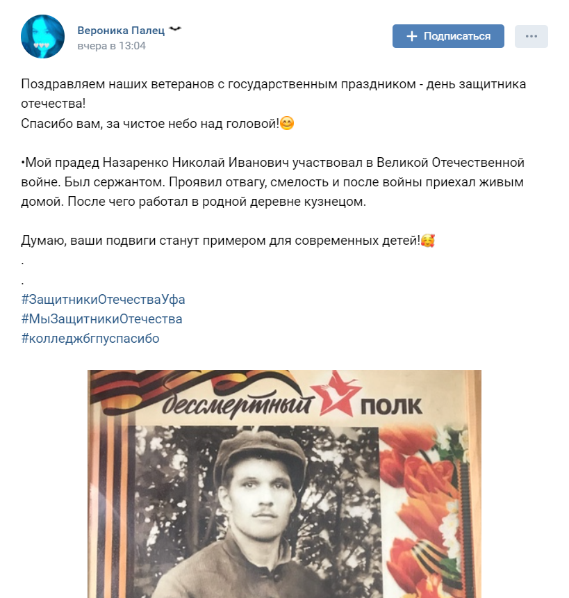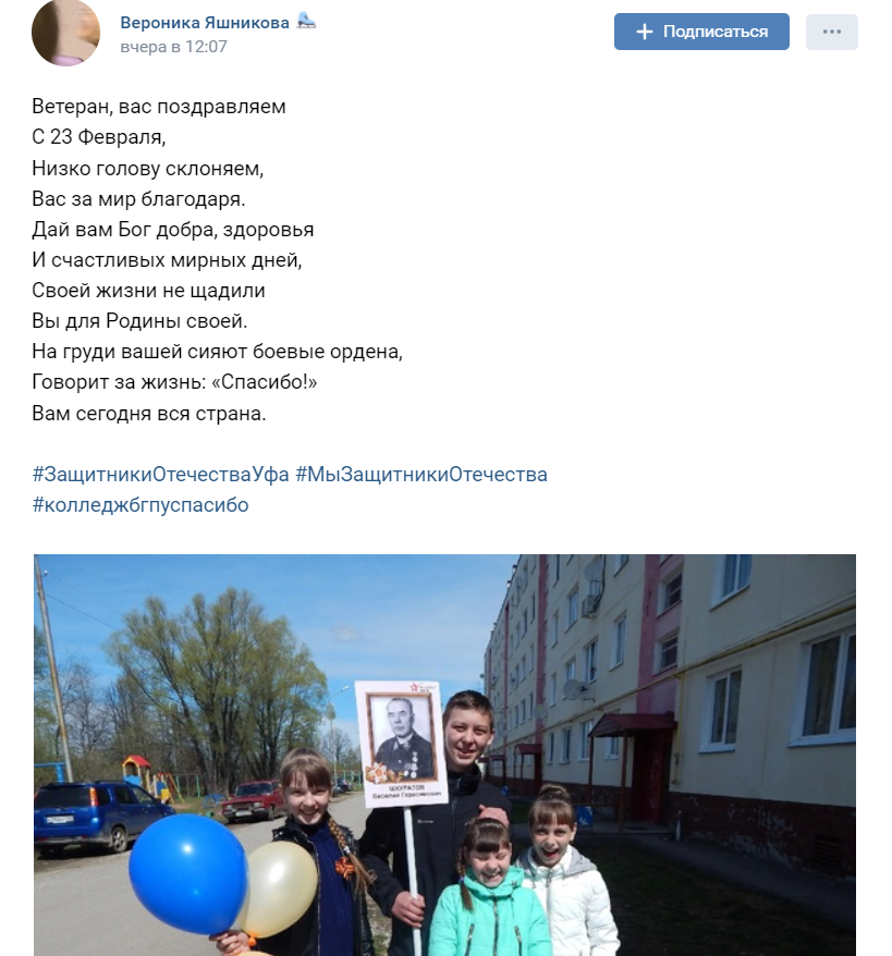 Ко Дню защитника Отечества студенты Колледжа БГПУ им.М.Акмуллы  так же присоединились к всероссийской акции «Родные объятия».