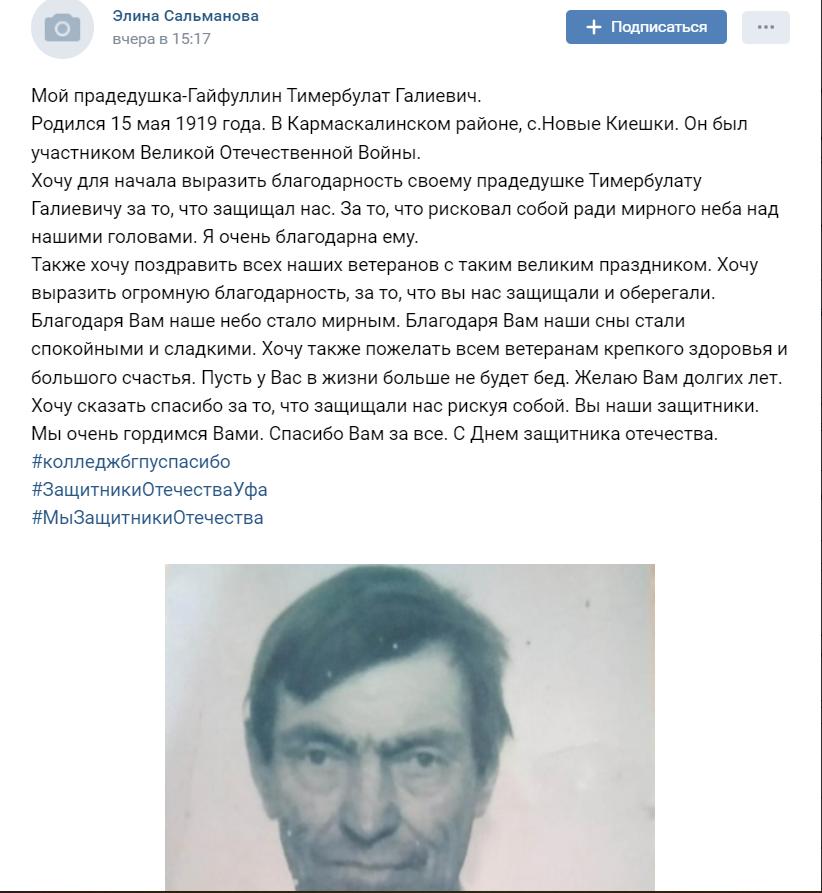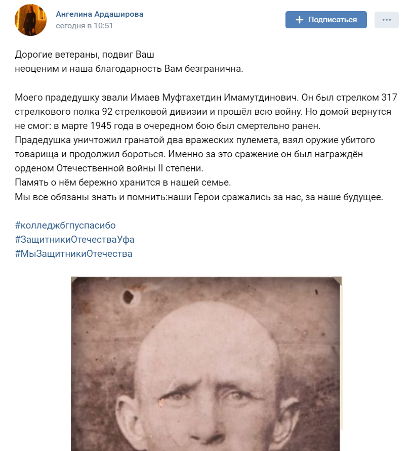 В преддверии праздника наш Колледж БГПУ им.М.Акмуллы принимает участие в акции, посвященному празднику: "Помним своих героев"