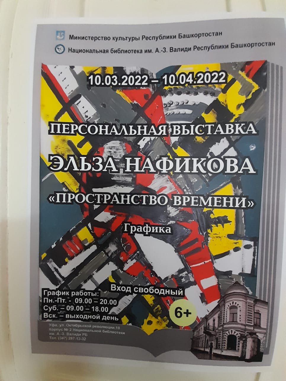 Экскурсовод библиотеки Эльвира Ваисовна провела всех по залам библиотеки, где была представлена выставка работ молодых художниц нашей столицы – Ани Богачевой («Коробка с карандашами») и Эльзы Нафиковой («Пространство времени») - в технике графика.