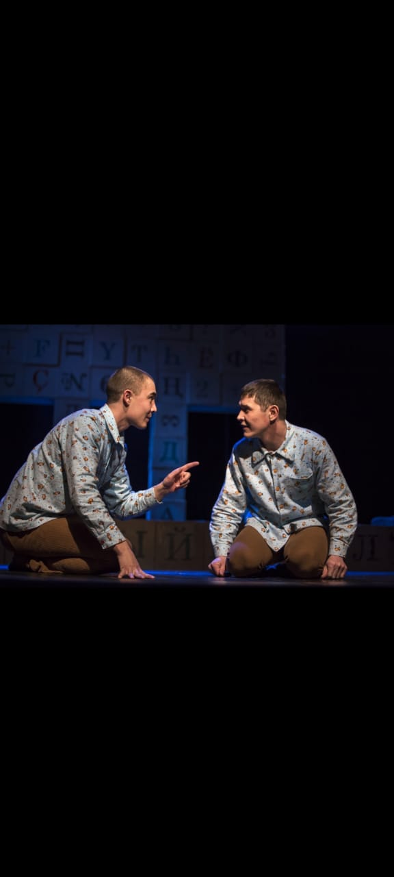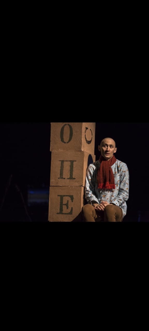 В спектакле заняты молодые артисты. Они рассказывают истории из жизни детдома. Сыграть детдомовских детей невозможно, для этого надо ими быть. Поэтому рассказ о жизни в детдоме мы слышим из уст актёров. Актёр повествует, рассказывает — от лица мужчины или женщины, старика или ребёнка, бога или дьявола — неважно. Он как человек-лицедей, примеряющий на себя различные маски...".