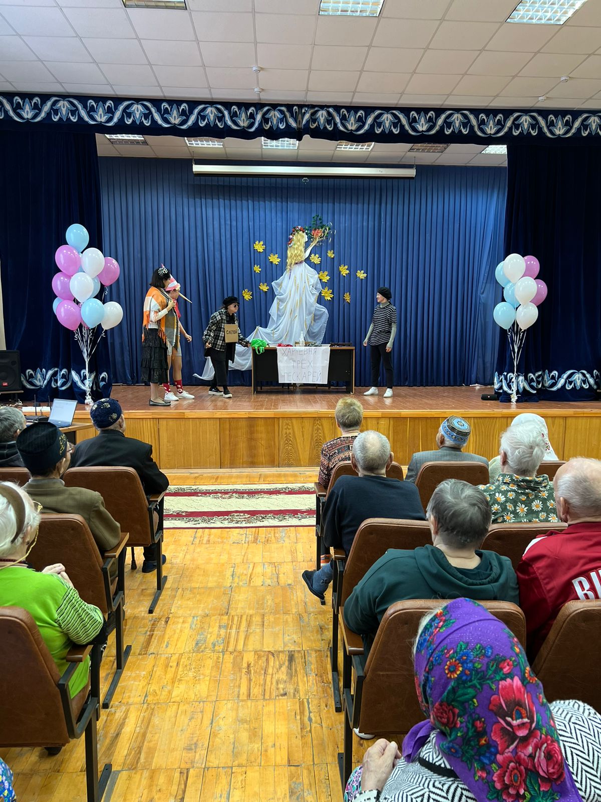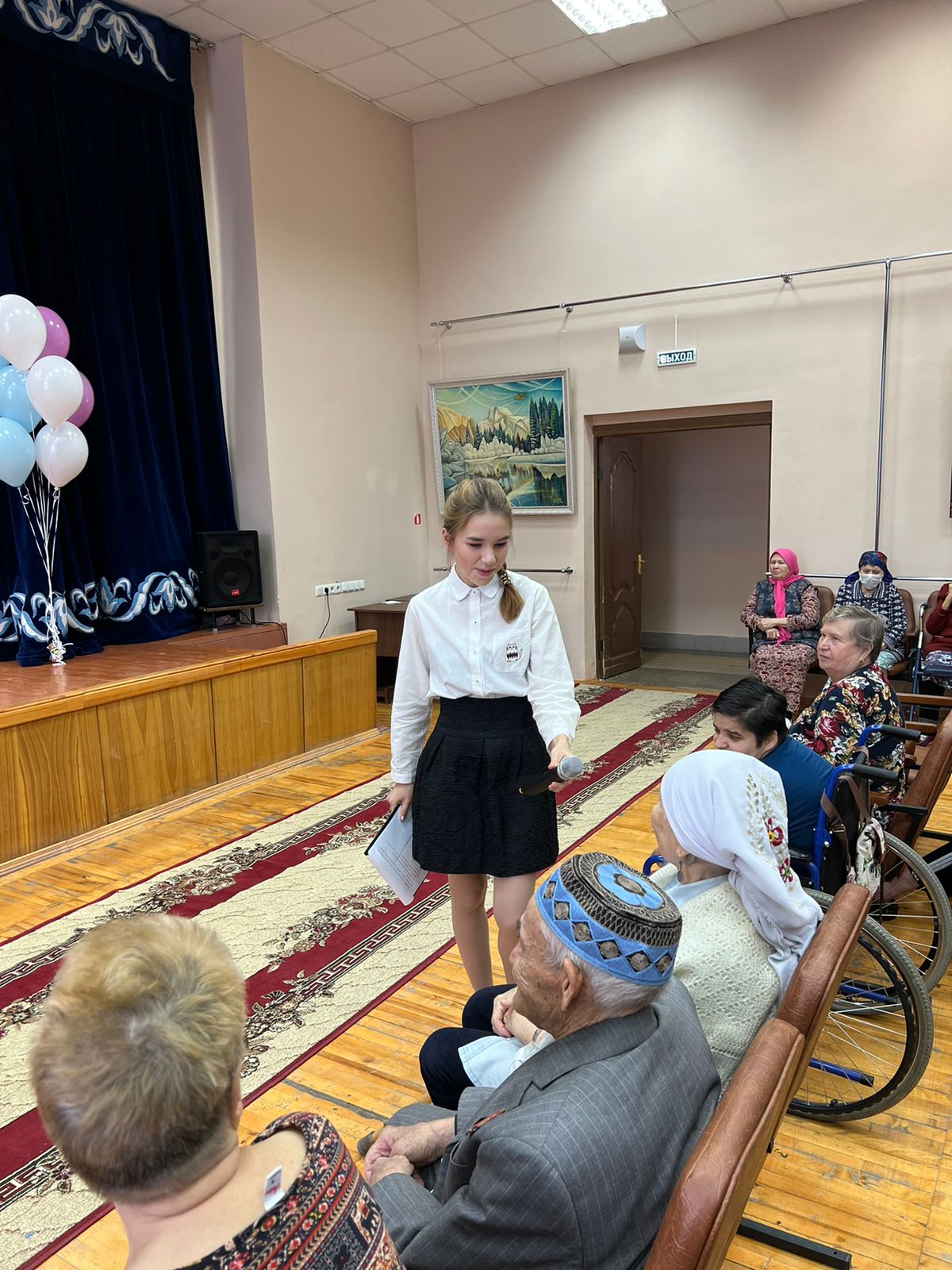 Чтобы создать праздничное настроение был организован концерт, в ходе которого студенты продемонстрировали свои творческие данные: спели песни, станцевали и показали театрализованное представление. Глаза постояльцев горели от радости. По окончанию концерта передали весь сбор центру и угостили бабушек и дедушек домашними пирогами. А после и вовсе исполнили песню по заказу дедушки.