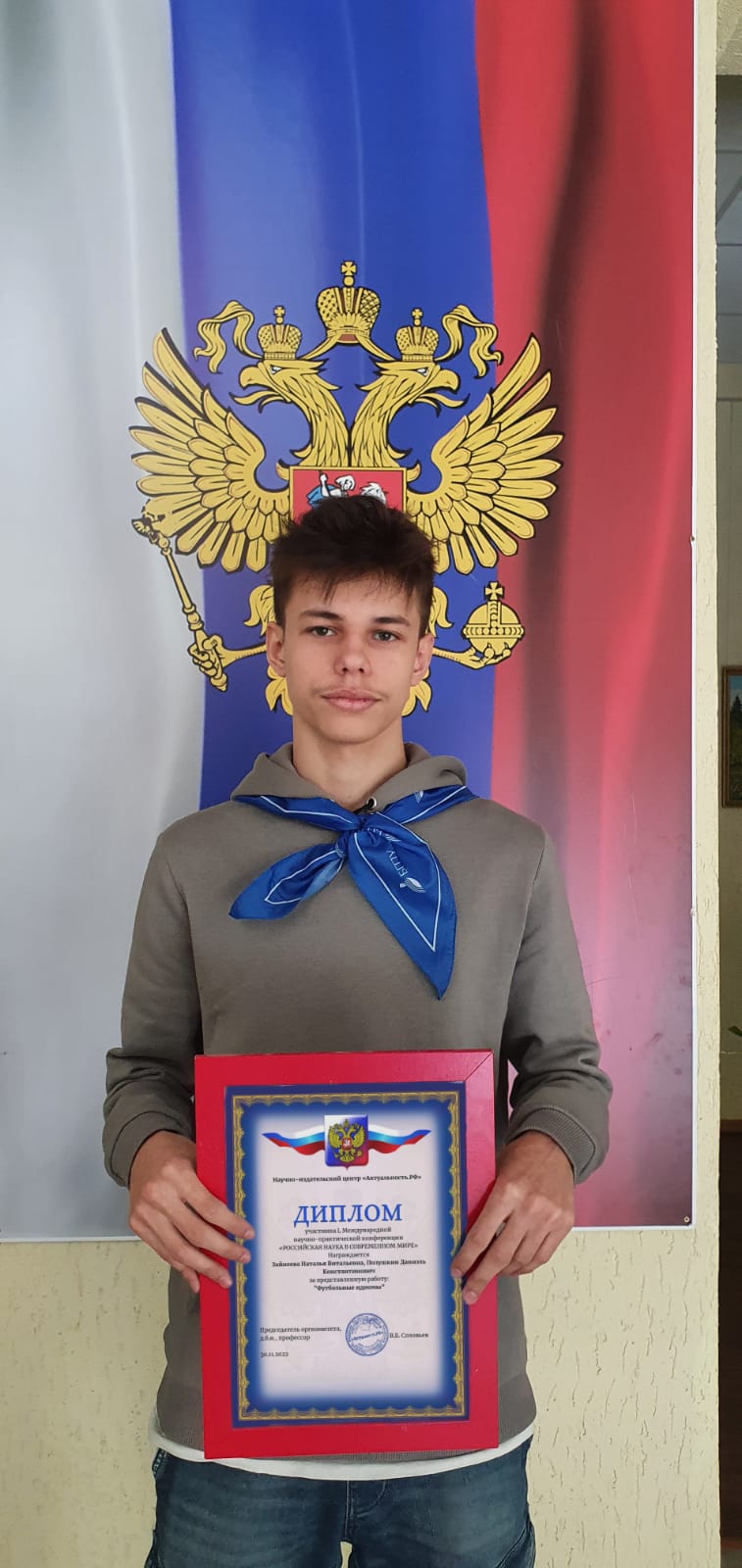 «РОССИЙСКАЯ НАУКА В СОВРЕМЕННОМ МИРЕ».  Студент 3-го курса специальности  «Туризм» Полушкин Даниэль под руководством преподавателя Зайнеевой Натальи Витальевны подготовили исследоватескую работу «Футбольные идиомы». По результатам НИЦ будет опубликован сборник статей в системе elibrary.