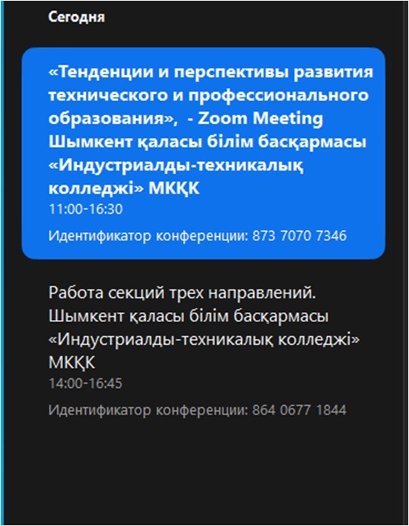 23 декабря 2022 года студентка специальности гр. 9ДО21-21(25) Миннуллина Ралина (рук. Юферова А.А.)приняла участие в он-лайн формате в международной  научно-практической конференции «Тенденции иперспективы развития технического и профессиональногообразования», целью которой является выявление педагогических идей, инициатив и проектов, а также обобщения передового опыта лучших практик педагоговтехнического и профессионального образования,представляющего ценность для педагогического процесса.казахском, русском ианглийском языках.
