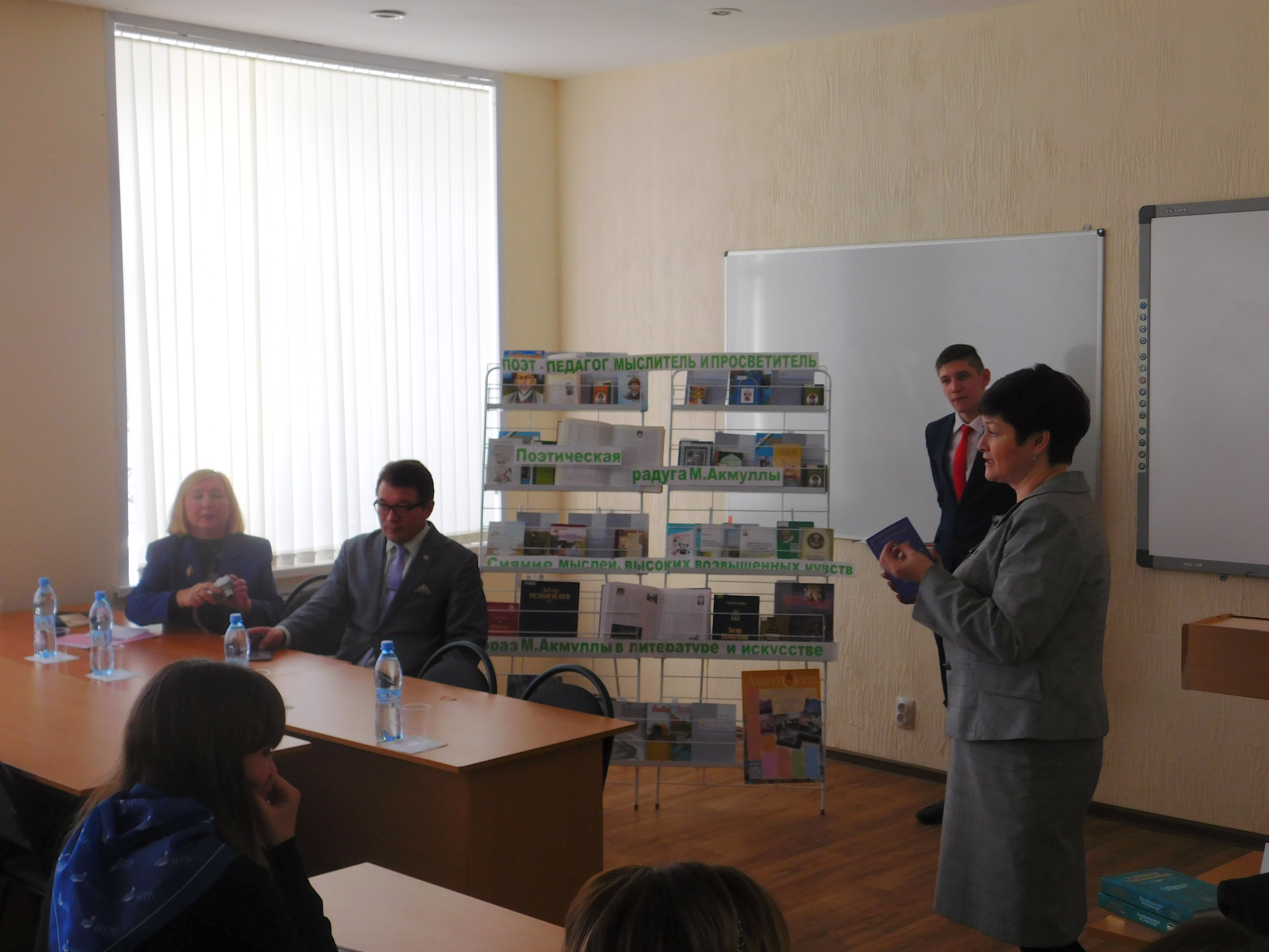 12 декабря 2016 года, в рамках проведения Акмуллинский дней в БГПУ им. М.Акмуллы, в нашем колледже состоялось мероприятие, где студенты гр. 9ПСО-11, под руководством зам.директора по НМР А.А.Юферовой и преподавателя А.А.Кидрячевой, встретились с поэтессой, журналисткой Л.К.Колоколовой и талантливым педагогом, и.о.председателя Союза писателей РБ З.А.Алибаевым. За «круглым столом» ребята обсудили интересные вопросы, связанные с творчеством приглашенных гостей, а также узнали много нового в области литературы и искусства.