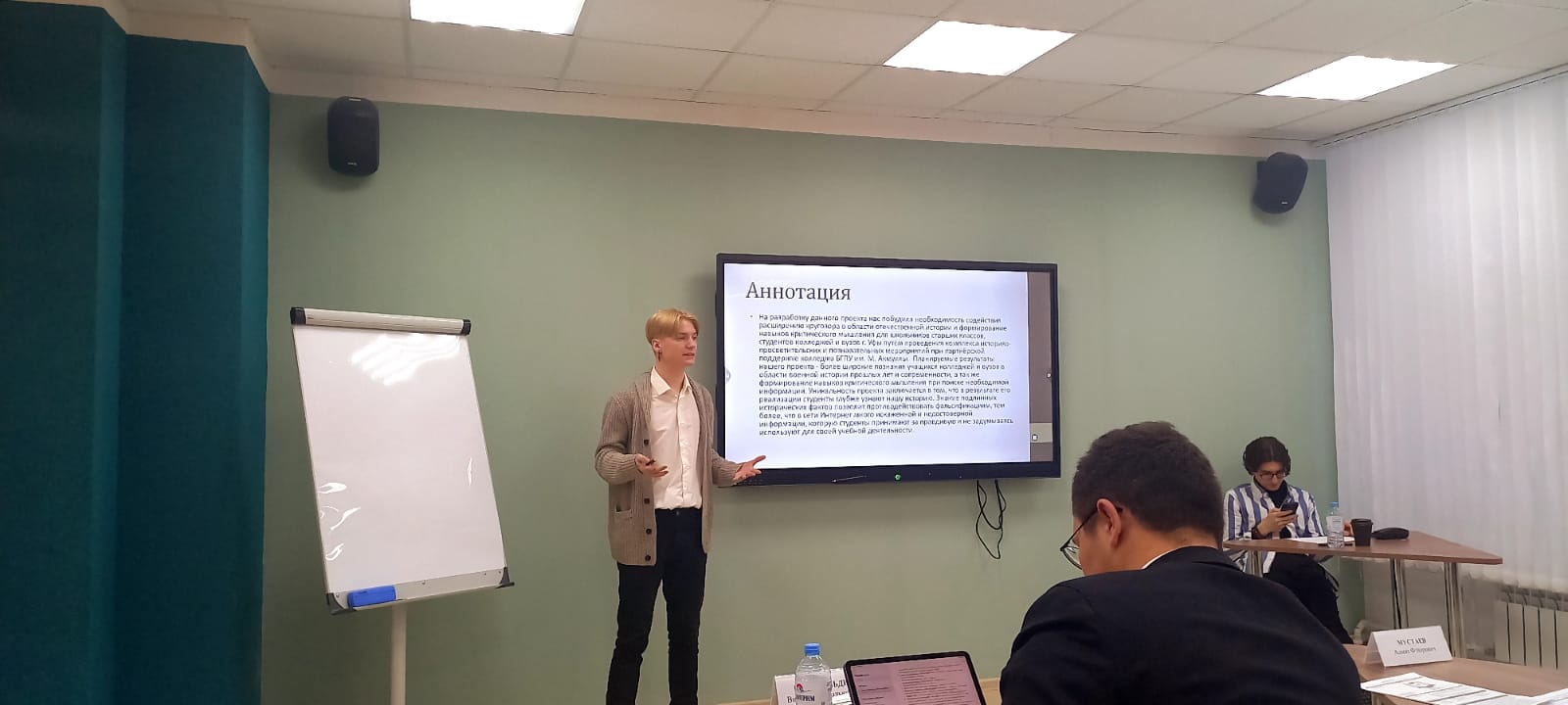 9 февраля прошла публичная защита студенческих проектов в рамках Акселератора, организованного Департаментом по воспитательной работе и молодежной политике. Участниками стали 65 студентов, которые были объединены в проектные команды студенческих советов и объединений. На финальную защиту в рамках Акселератора было допущено 17 инициатив, в том числе и проект студентов колледжа БГПУ им. М. Акмуллы. Наставником проекта выступил преподаватель колледжа, кандидат исторических наук Алексей Иванов.