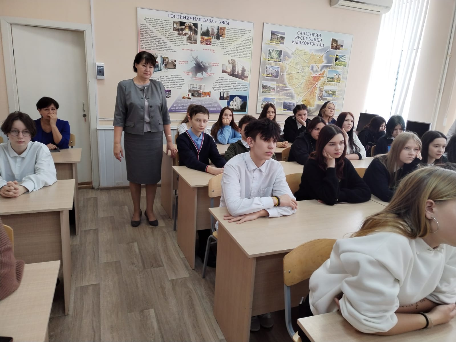 Психолого-педагогическому классу была представлена полная информация о специальности на русском и английском языках. Были представлены два диалога на тему заселения и выселения (диалоги «Check in» и «Check out of a hotel») гостя из гостиницы на английском языке,  далее школьники увидели презентацию на тему «Мy dream hotel» (проект «My dream hotel: feel like a star», разработанный студентки 3 курса). О.В.